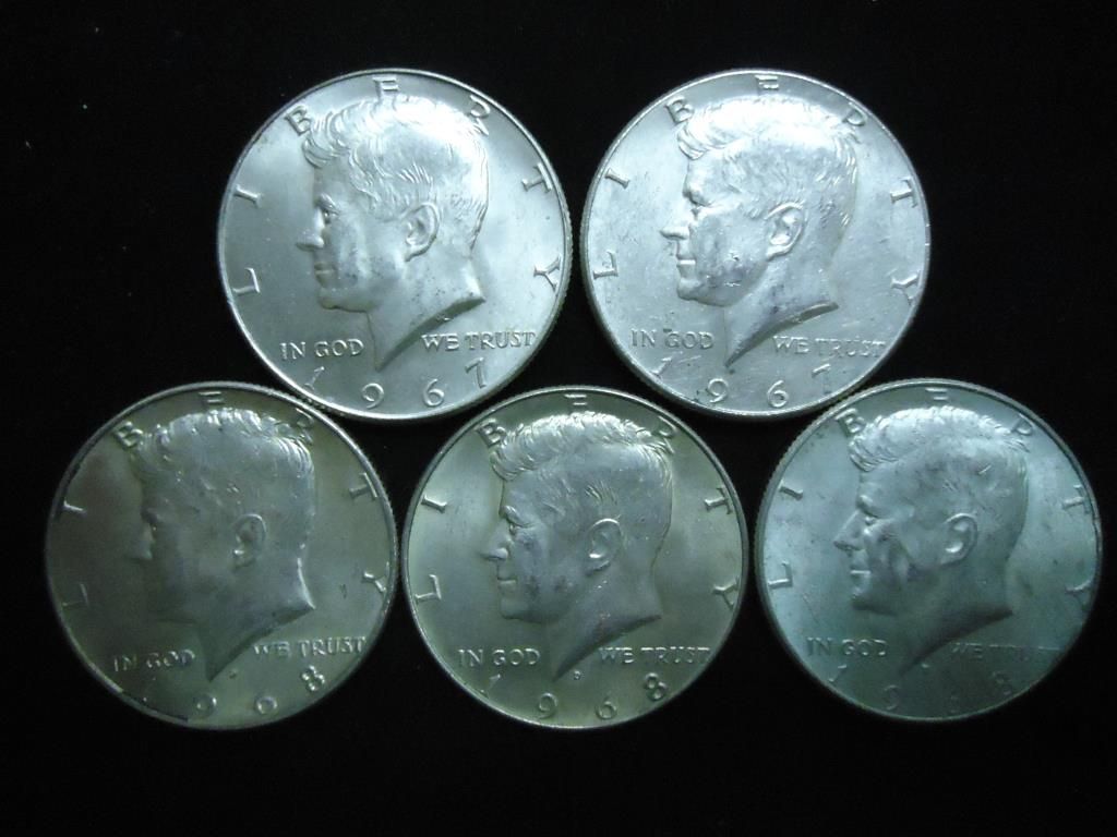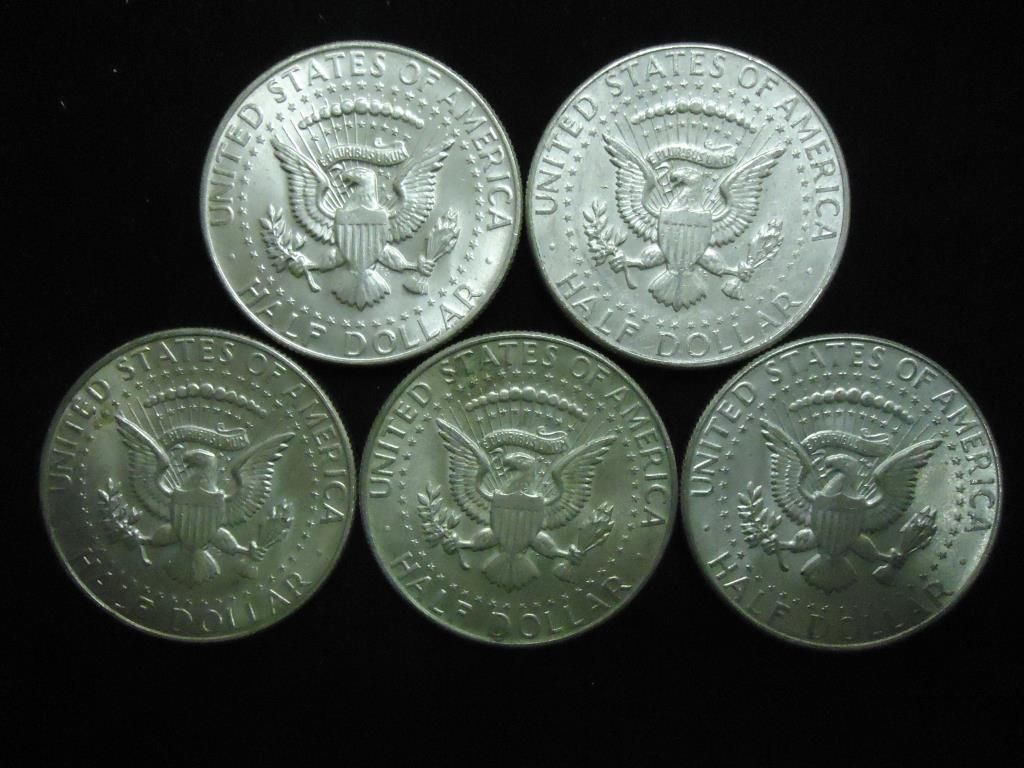 5 ASSORTED 40% SILVER KENNEDY HALF DOLLARS