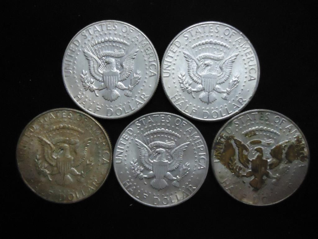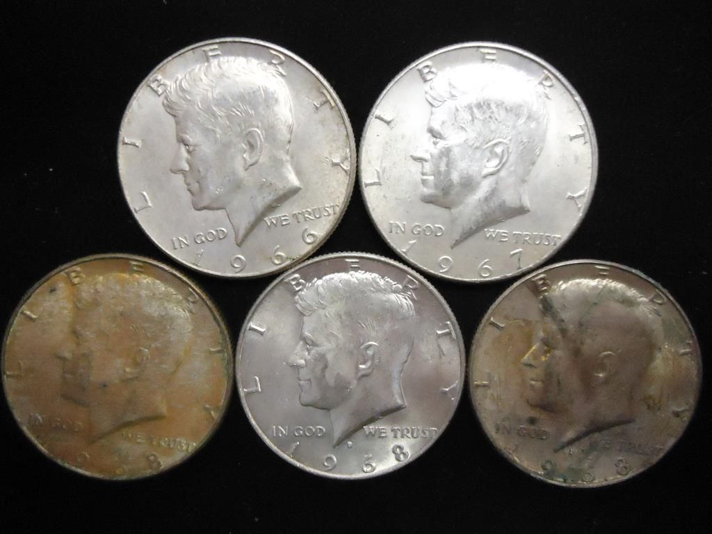 5 ASSORTED 40% SILVER KENNEDY HALF DOLLARS