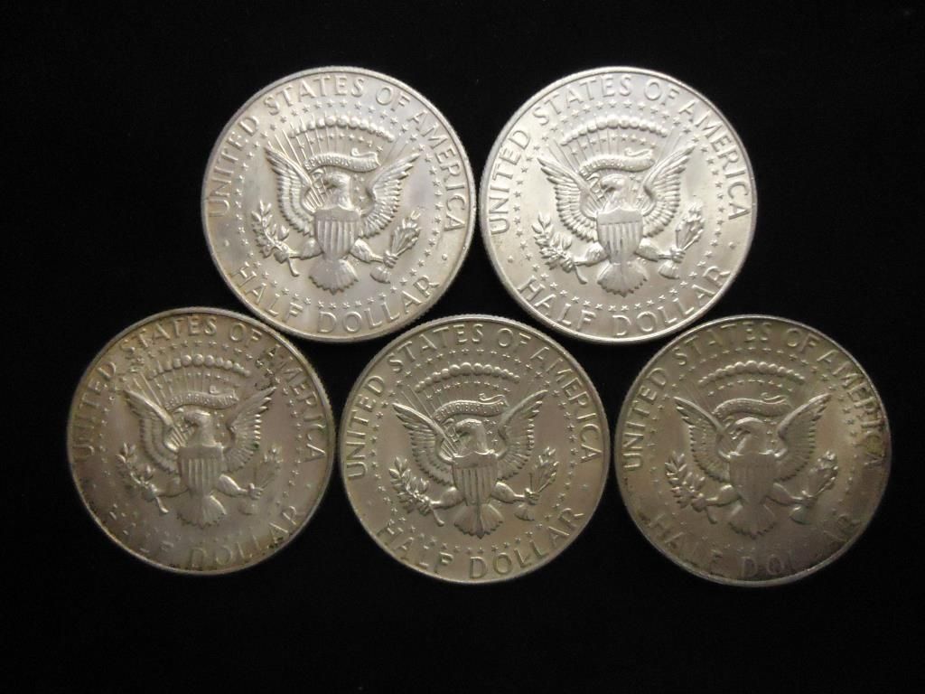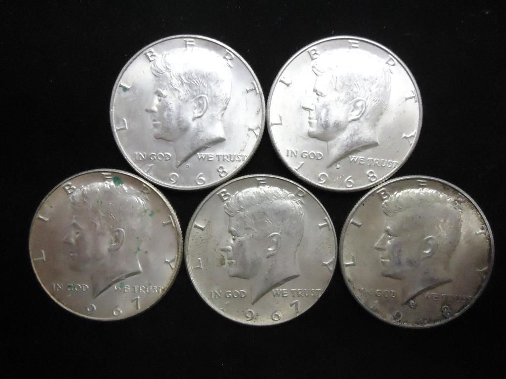 5 ASSORTED 40% SILVER KENNEDY HALF DOLLARS