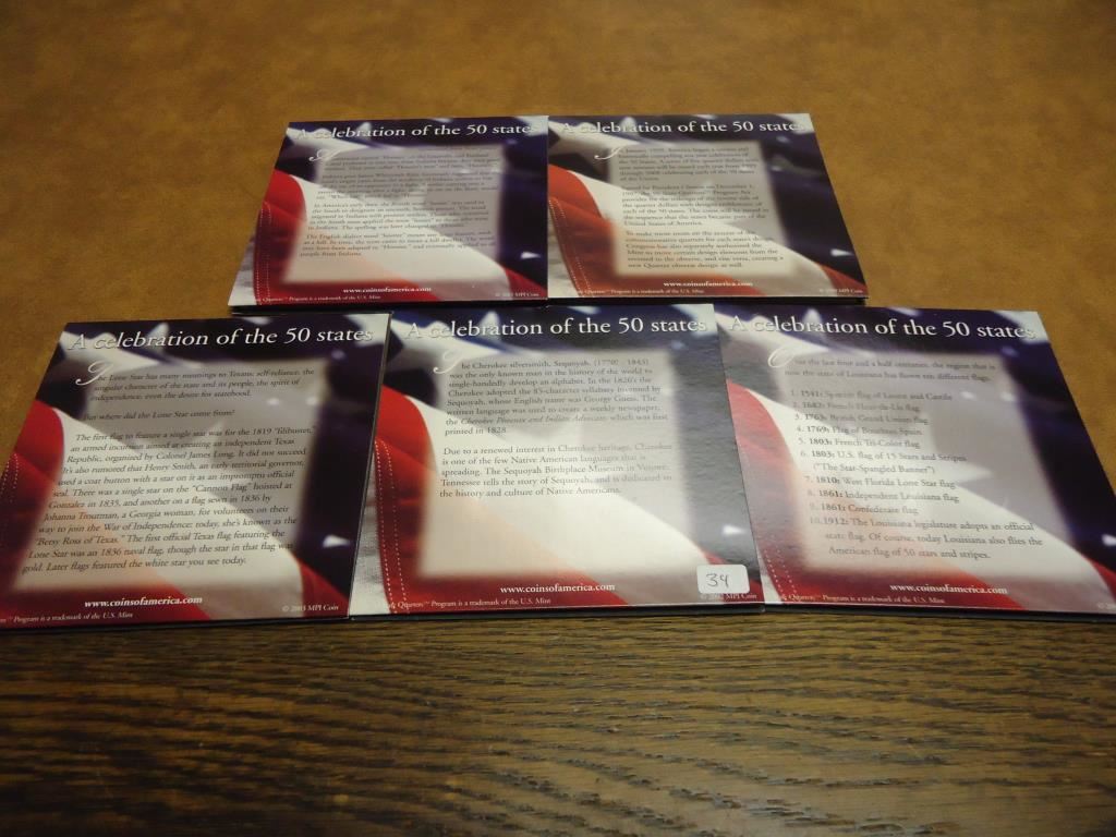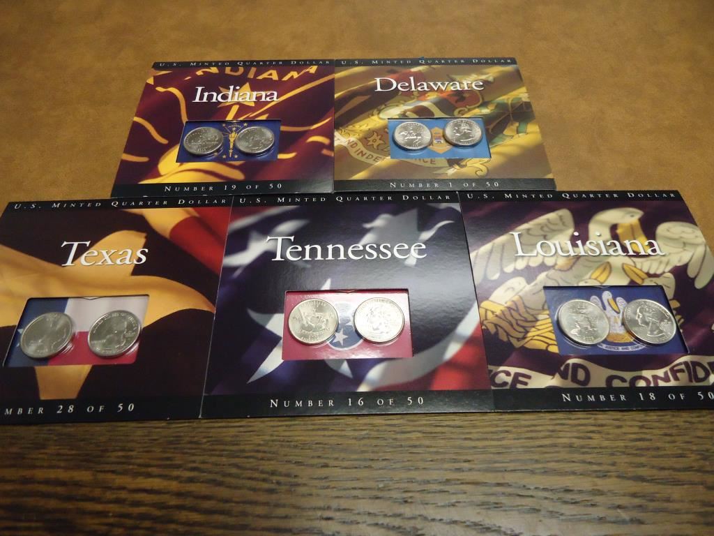 ORIGINAL US MINT PACKAGING, 1999 DELAWARE, 2002 INDIANA, 2002 LOUISIANA, 2002 TENNESSEE AND 2004 TEXAS
