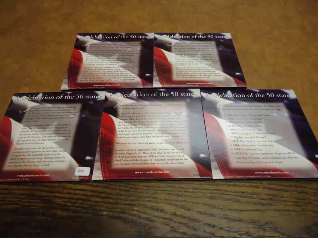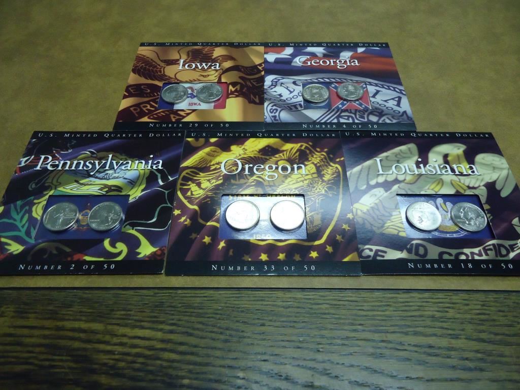 ORIGINAL US MINT PACKAGING, 1999 GEORGIA, 2004 IOWA, 2002 LOUISIANA, 2005 OREGON AND 1999 PENNSYLVANIA