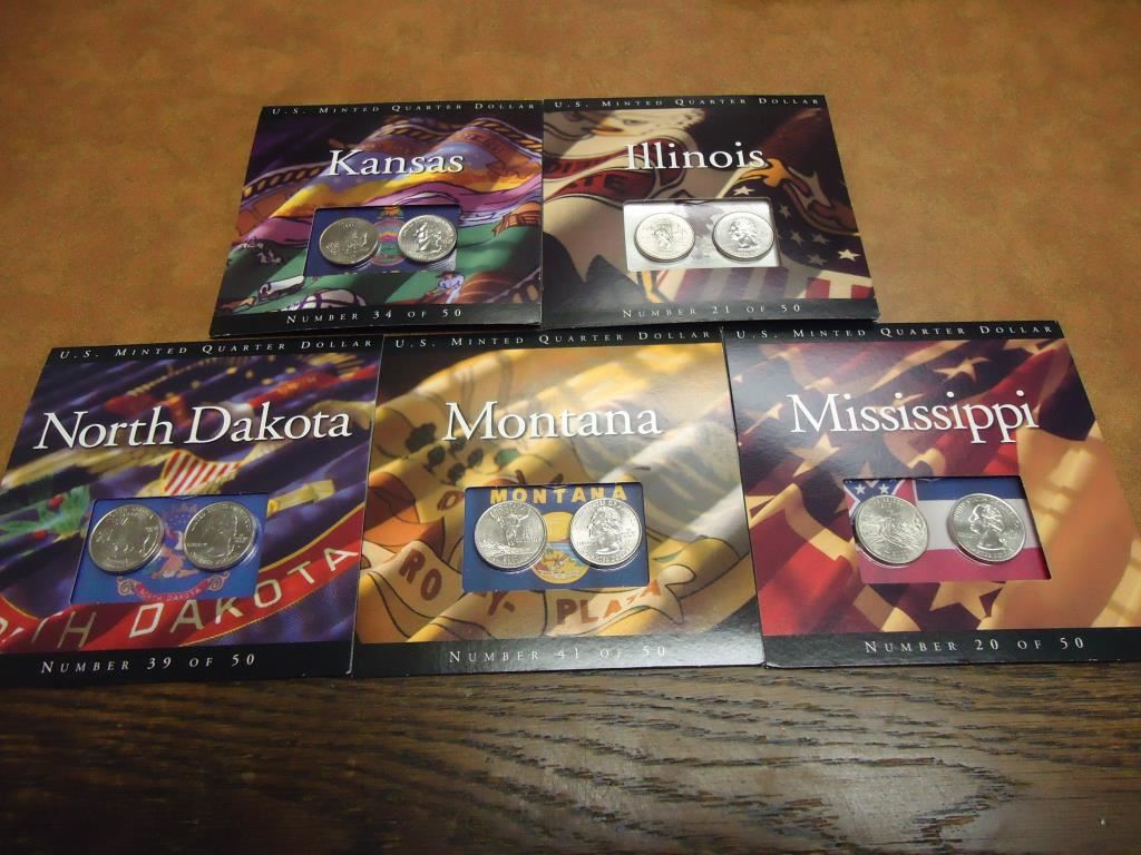 ORIGINAL US MINT PACKAGING, 2003 ILLINOIS, 2005 KANSAS, 2002 MISSISSIPPI, 2007 MONTANA AND 2006 NORTH DAKOTA