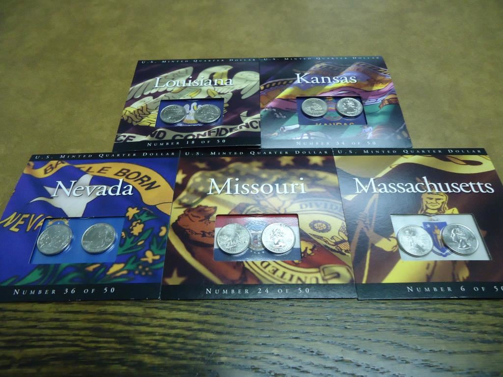 ORIGINAL US MINT PACKAGING, 2005 KANSAS, 2002 LOUISIANA, 2000 MASSACHUSETTS, 2003 MISSOURI AND 2006 NEVADA