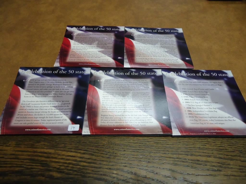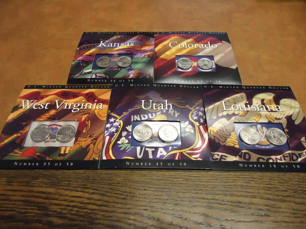 2006 COLORADO, 2005 KANSAS, 2002 LOUISIANA, 2007 UTAH AND 2005 WEST VIRGINIA, ORIGINAL US MINT PACKAGING
