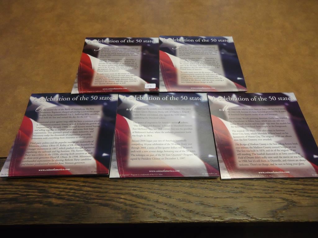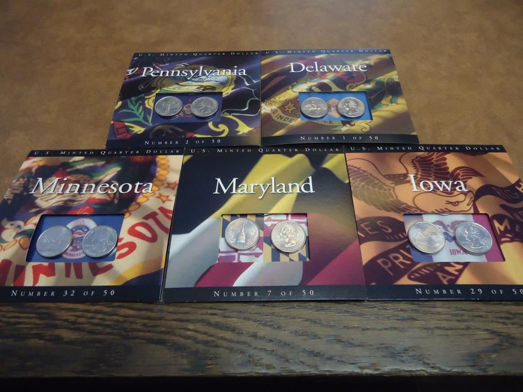 1999 DELAWARE, 2004 IOWA, 2000 MARYLAND, 2005 MINNESOTA AND 1999 PENNSYLVANIA, ORIGINAL US MINT PACKAGING