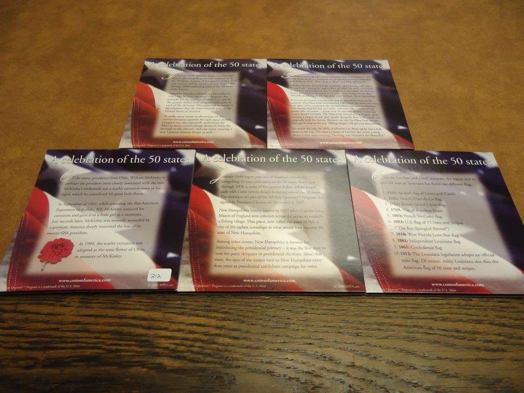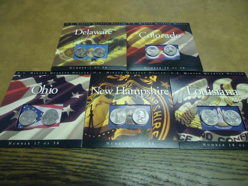 ORIGINAL US MINT PACKAGING, 2006 COLORADO, 1999 DELAWARE, 2002 LOUISIANA, 2000 NEW HAMPSHIRE AND 2002 OHIO