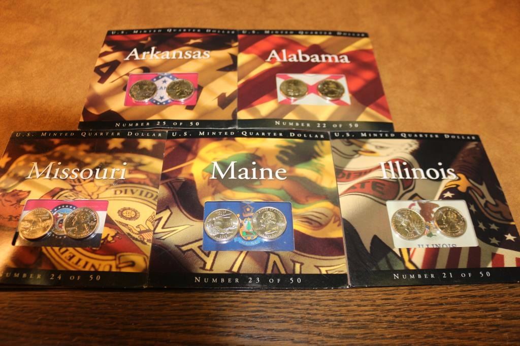 ORIGINAL US MINT PACKAGING, 2003 ALABAMA, 2003 ARKANSAS, 2003 ILLINOIS, 2003 MAINE AND 2003 MISSOURI