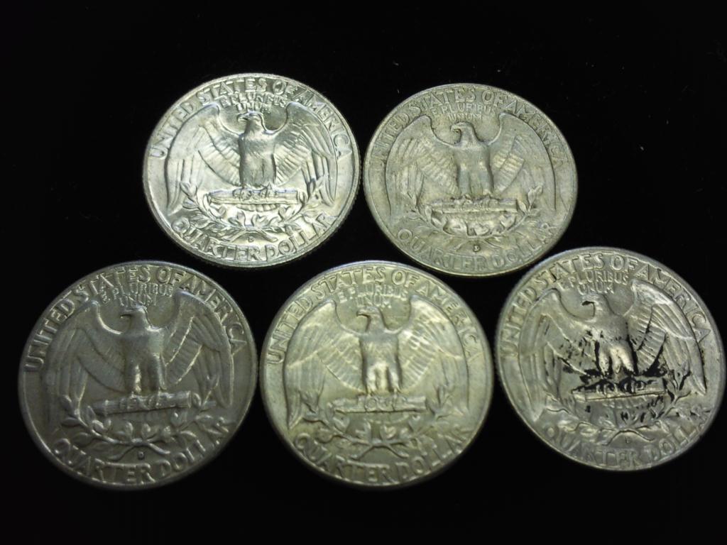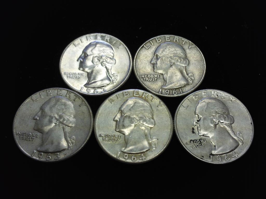 5 ASSORTED 60'S WASHINGTON SILVER QUARTERS