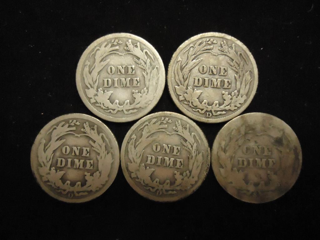 5 ASSORTED BARBER DIMES