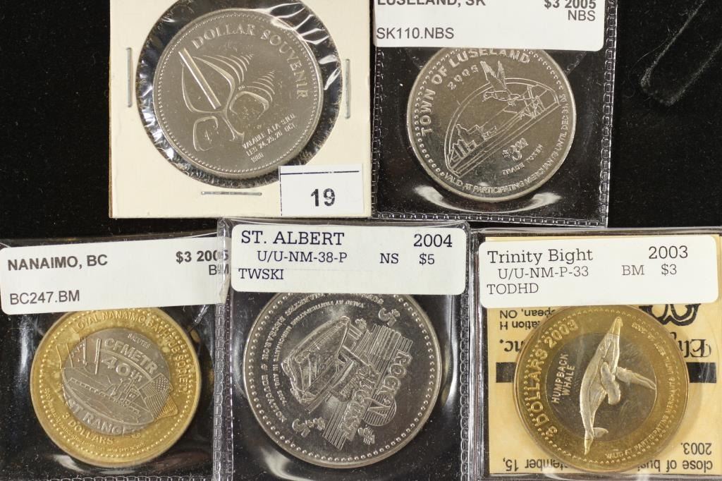 1980 LA SOUCIETE NUMISMATIQUE, 2005 LUSELAND, 2005 NANAIMO, 2004 ST. ALBERT AND 2003 TRINITY BIGHT