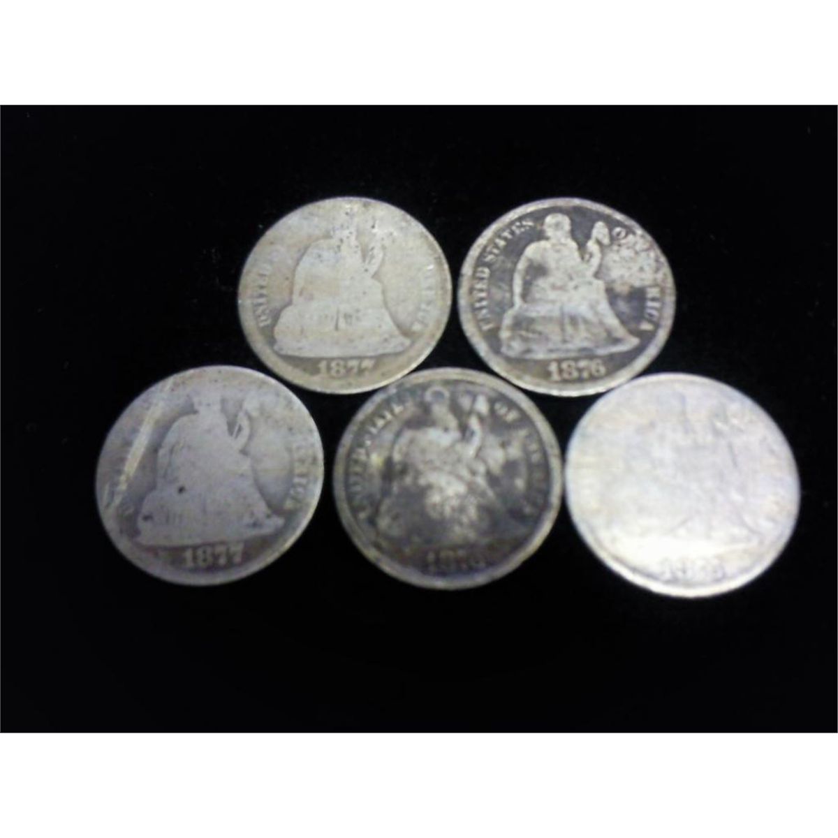 5 ASSORTED CC SEATED LIBERTY DIMES
