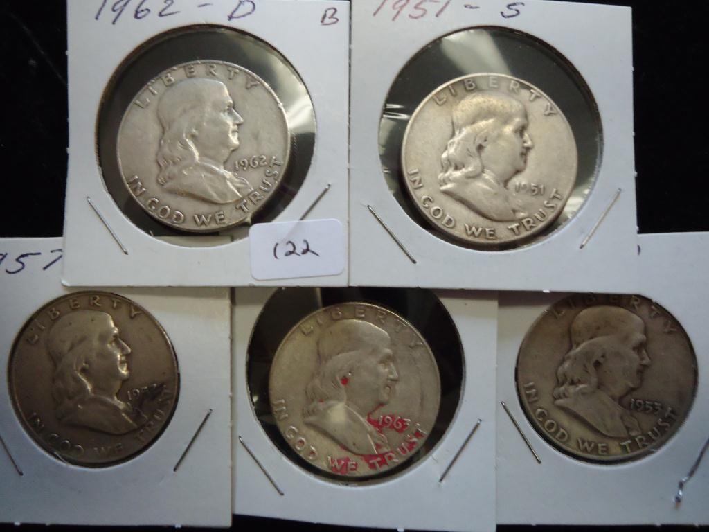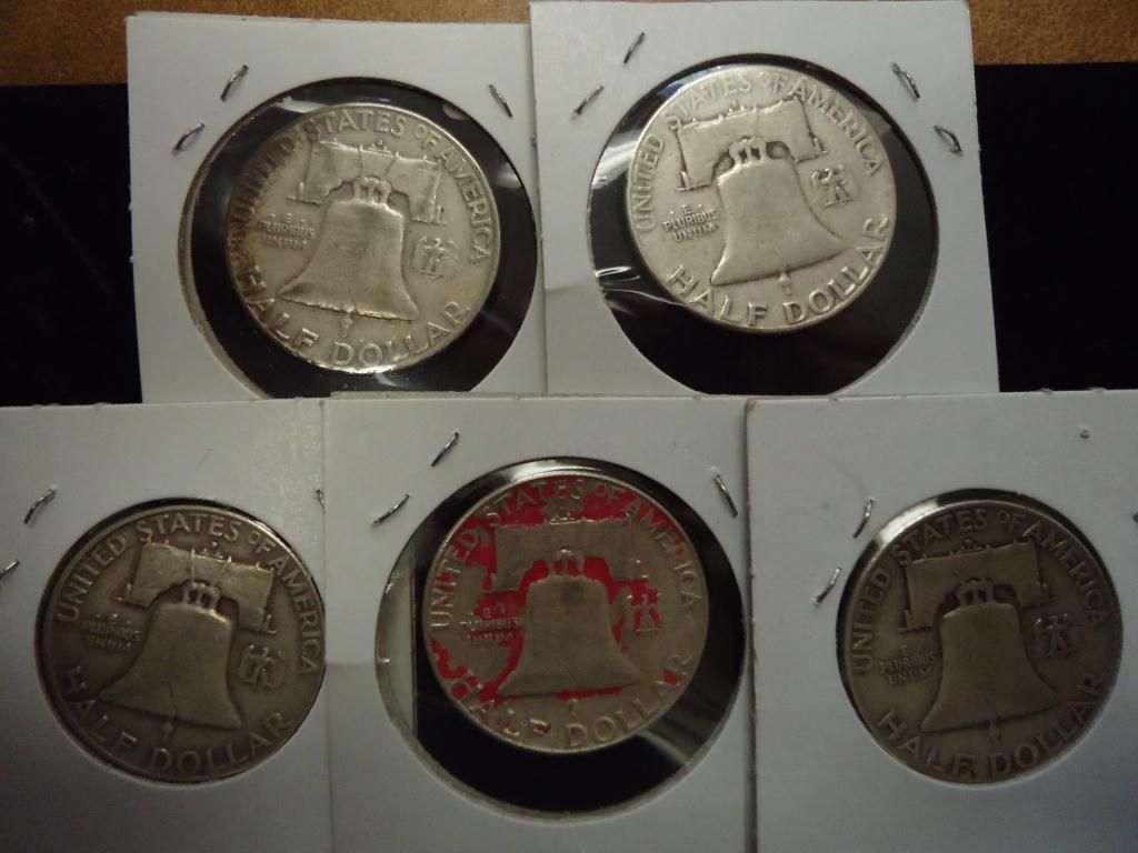 5 ASSORTED FRANKLIN HALF DOLLARS