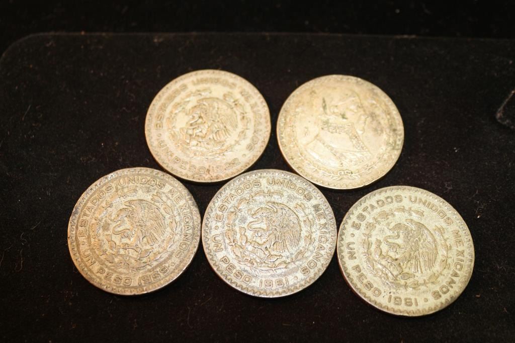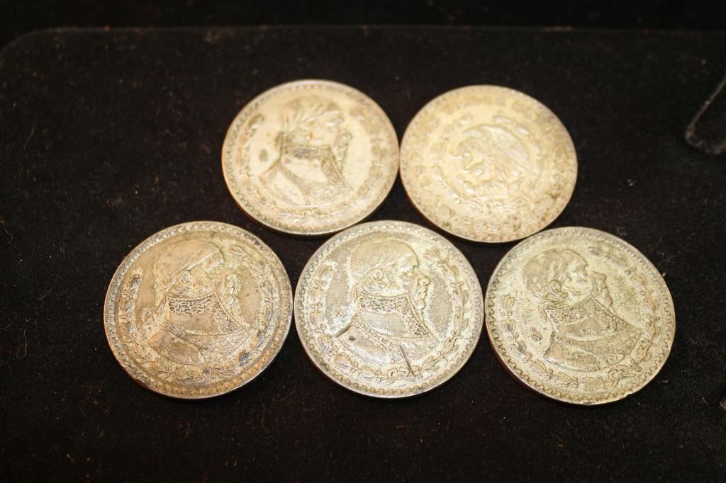 5 ASSORTED MEXICO PESOS 10% SILVER