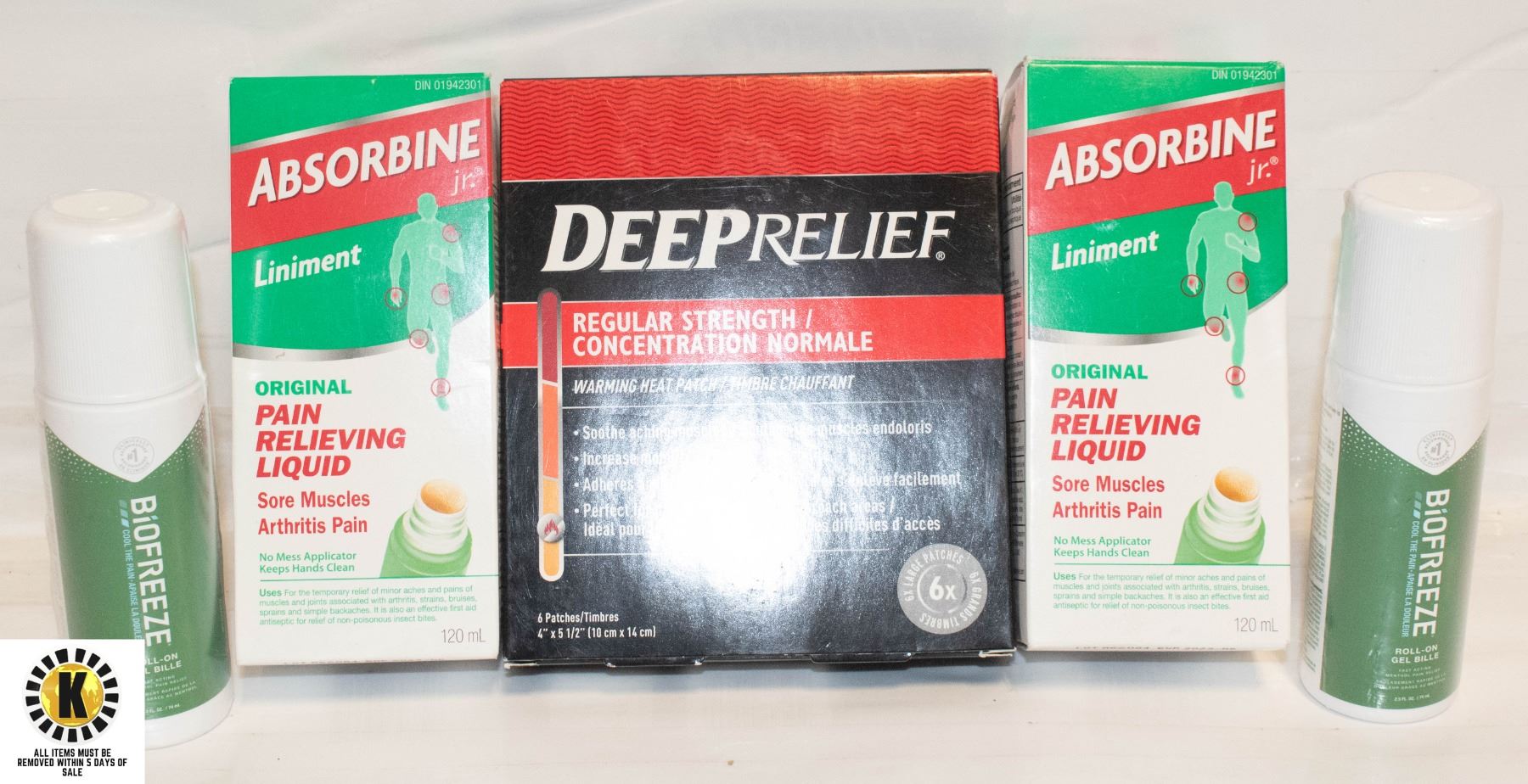 5 ASSORTED PAIN RELIEF PRODUCTS