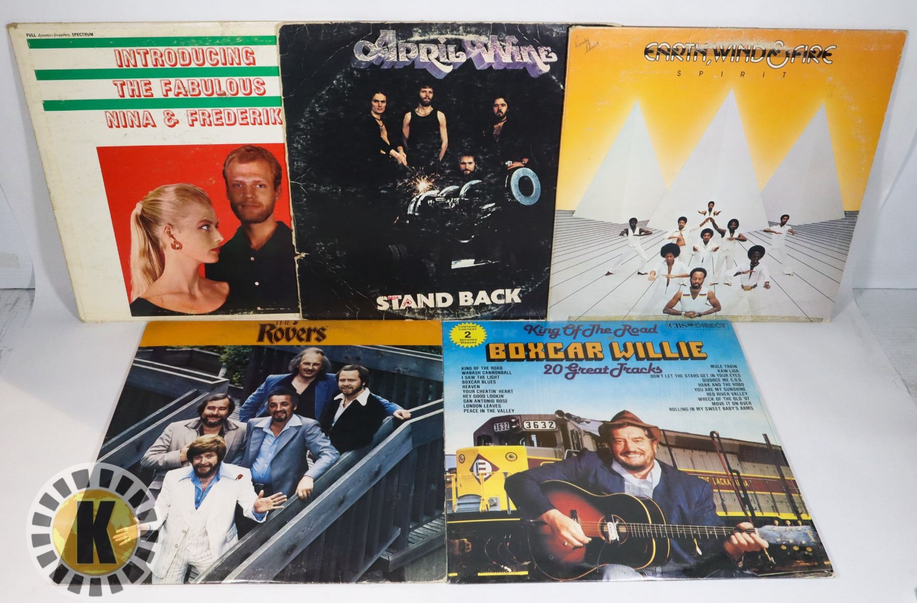 THE ROVERS BOXCAR WILLIE KING OF THE ROAD INTRODUCING THE FABULOUS NINA AND FREDERIK APRIL WINE STAND BACK EARTH, WIND AND FIRE SPIRIT***ITEM(S) LOCATED IN LETHBRIDGE ALBERTA. SMALL ITEMS ONLY ARE AVAILABLE FOR FREE TRANSPORT TO EDMONTON OFFICE (READ AUCTION DETAILS FOR MORE INFORMATION)