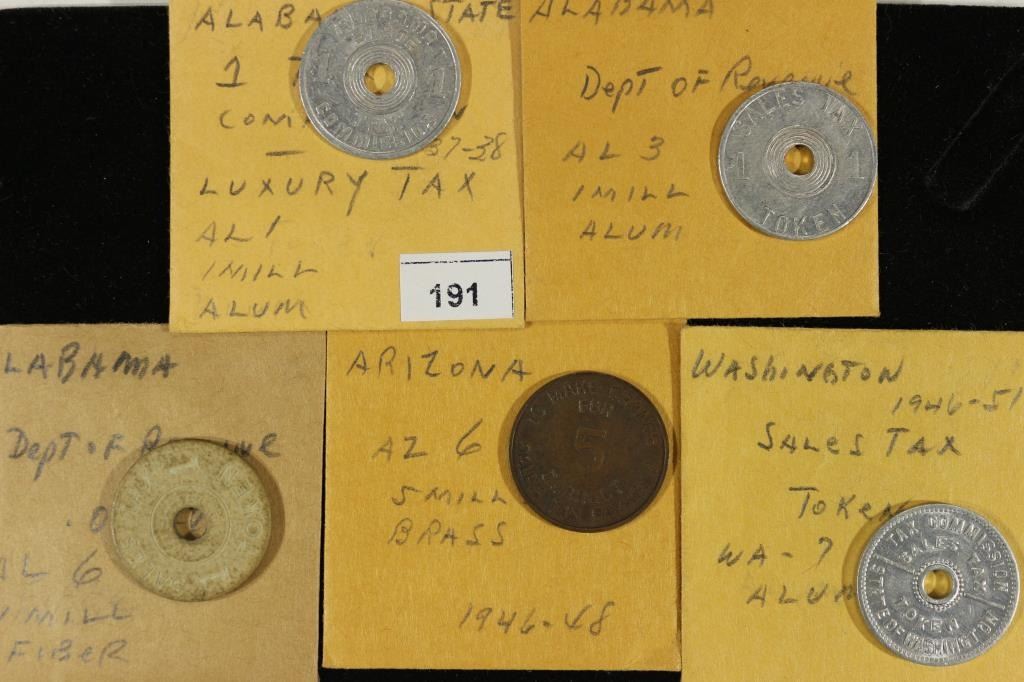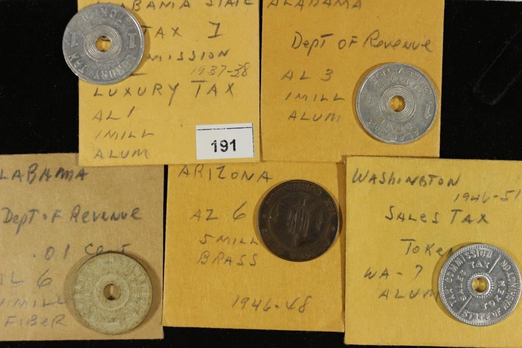 2- ALABAMA 1 MIL ALUMINUM, ALABAMA 1 MIL (FIBER), 1946-48 ARIZONA 5 MILS BRASS AND 1946-1951 WASHINGTON ALUMINUM