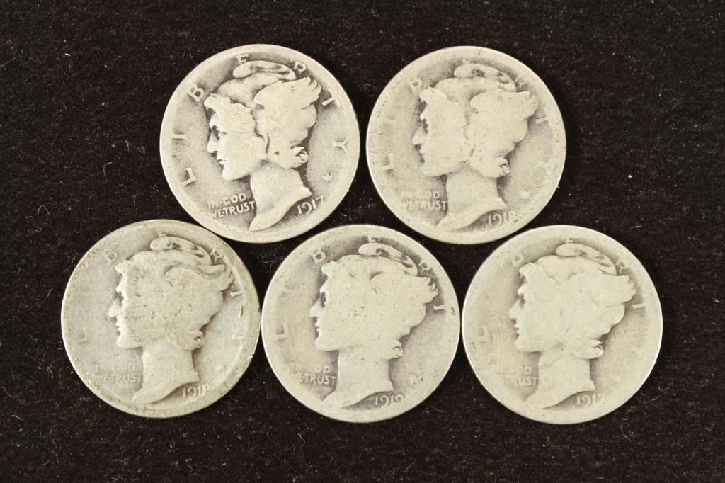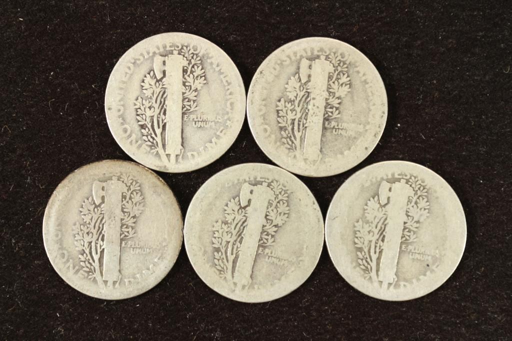 5 ASSORTED TEEN'S MERCURY DIMES