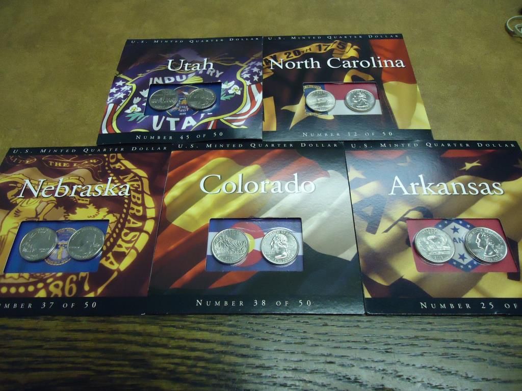 2003 ARKANSAS, 2006 COLORADO, 2006 NEBRASKA, 2001 NORTH CAROLINA AND 2007 UTAH, ORIGINAL US MINT PACKAGING