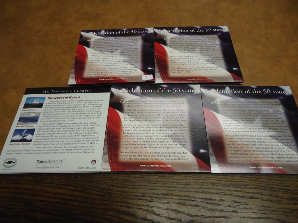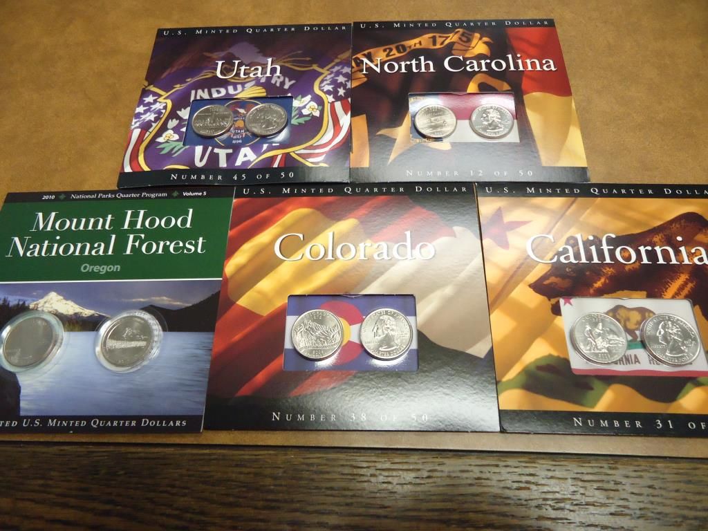 SETS, 2005 CALIFORNIA, 2006 COLORADO, 2010 MOUNT HOOD, 2001 NORTH CAROLINA AND 2007 UTAH, ORIGINAL US MINT PACKAGING