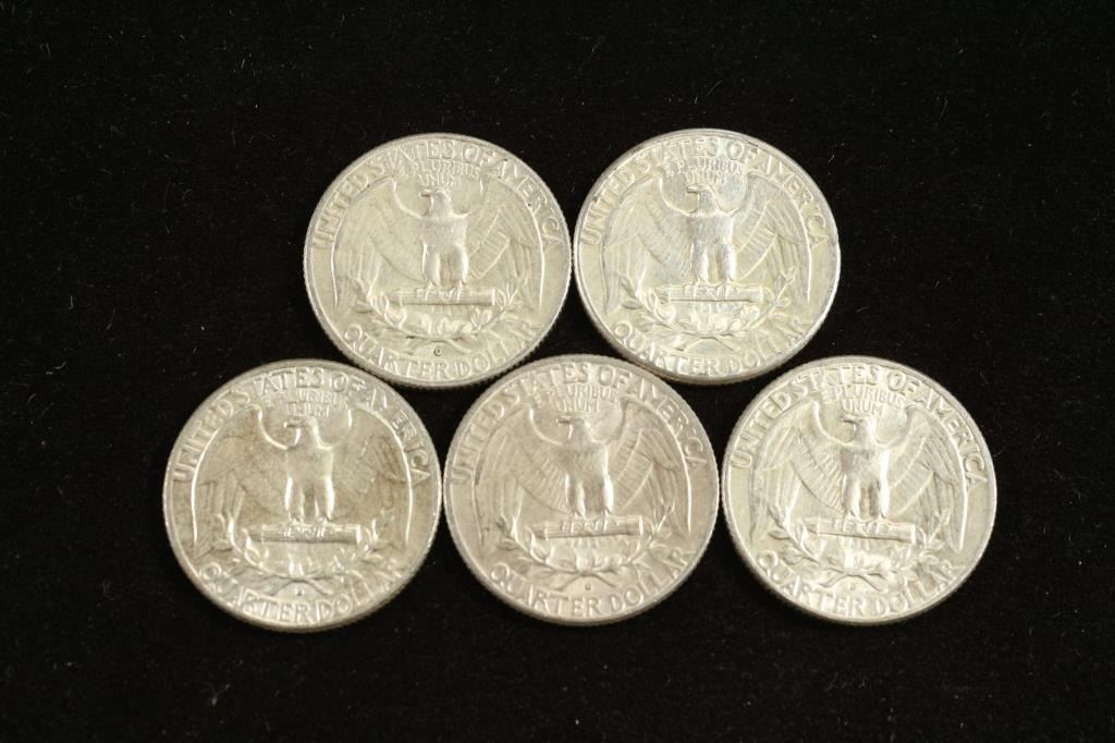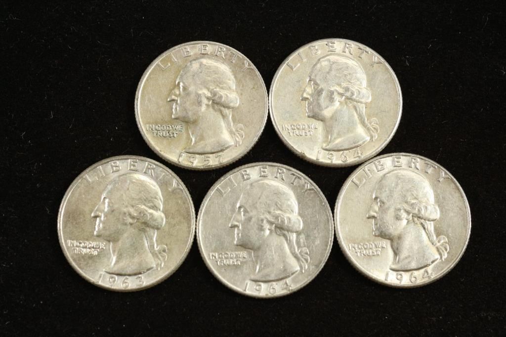 5 ASSORTED WASHINGTON SILVER QUARTERS