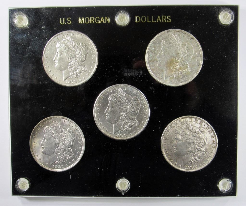 5-AU/BU MORGAN DOLLARS: 2- 1878-S, 1882-O,