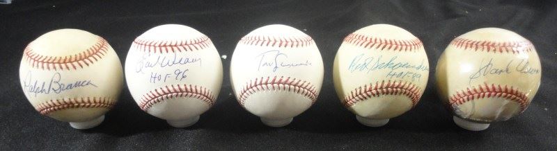 5 - AUTOGRAPH BASEBALLS - HANK AARON, TOMMY LASORDA, SCHOENDIENST, EARL WEAVER