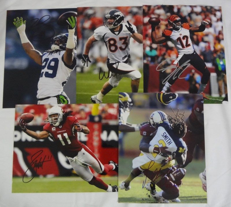 Mohamed Sanu (Cincinnati), Wes Welker (Denver), Earl Thomas (Seatle), Larry Fitzgerald (Arizona) No COA's EST 80.00-95.00
