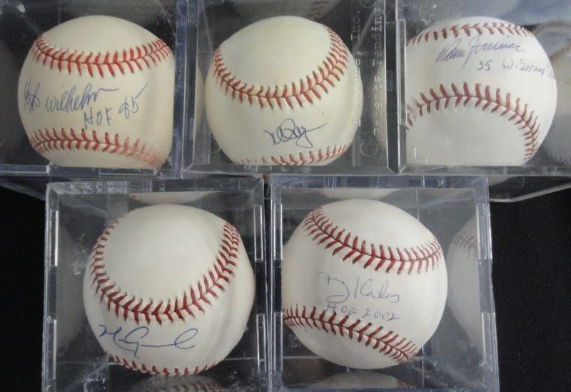 5 - AUTOGRAPHED BASEBALLS - MARK GRACE, HARRY KALAS, DON ZIMMER, MARK McGWIRE,
