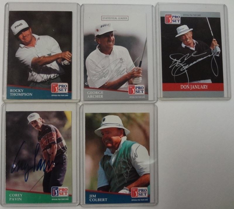 5 AUTOGRAPHED PRO SET GOLF TRADING CARDS--PAVIN, COLBERT, JANUARY, ARCHER &
