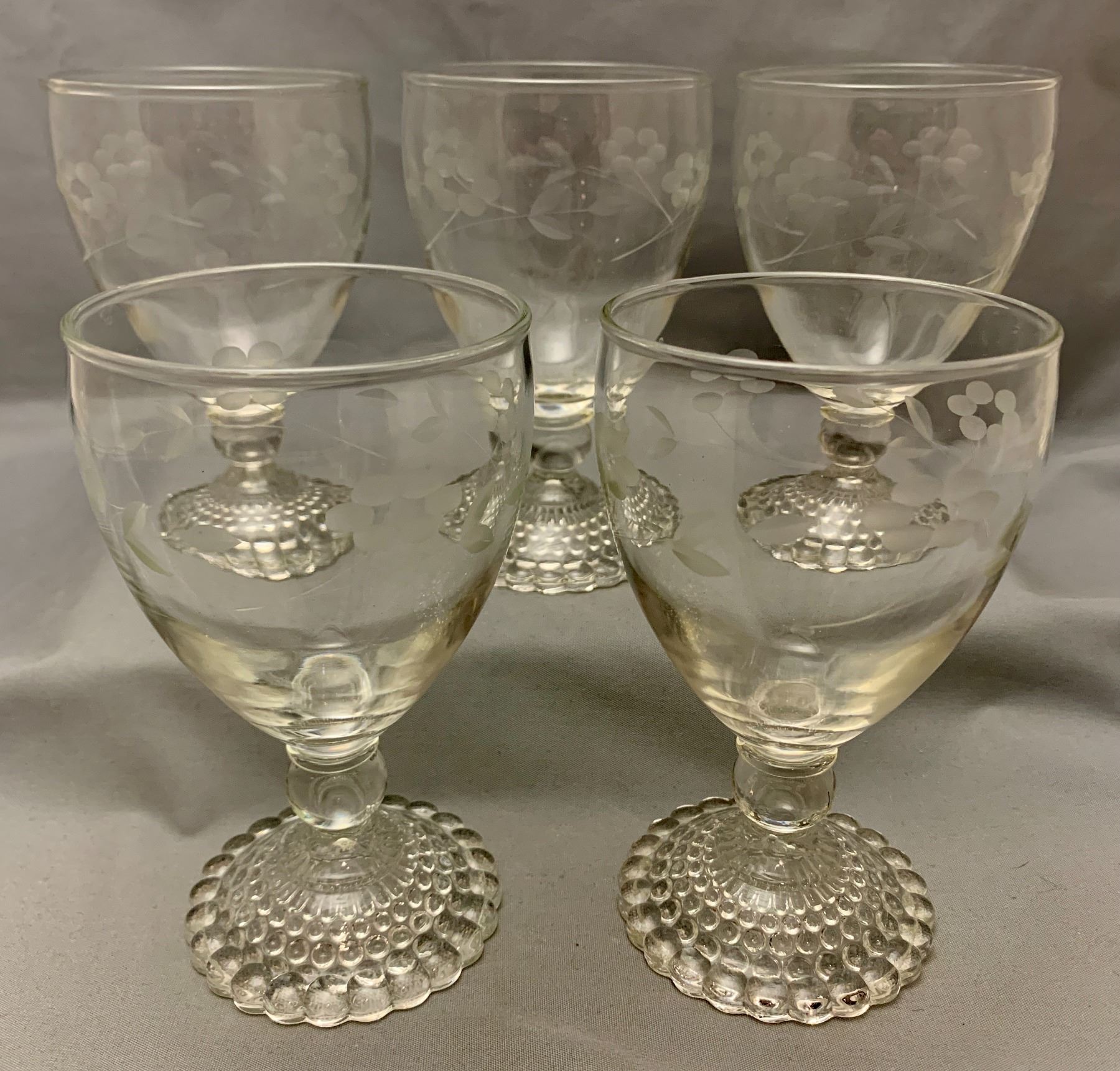 (5) Anchor Hocking Elegant Stemmed Glassware/Tumblers - "Wheelcut", C.1950s