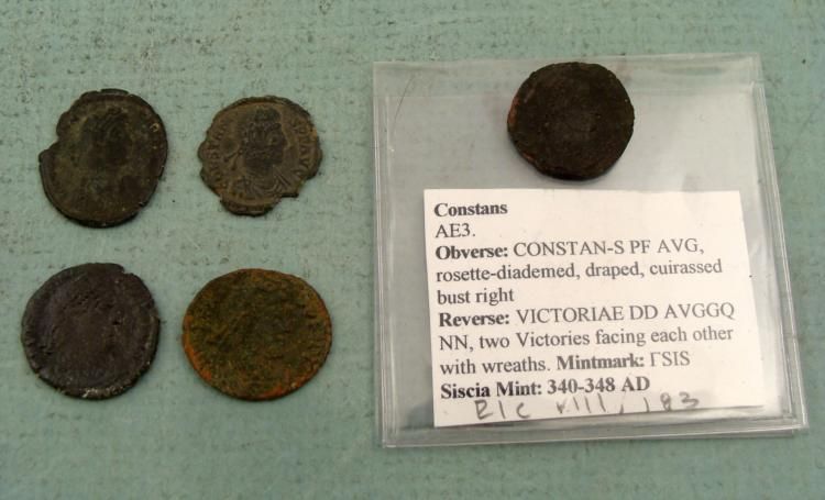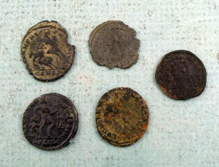 Lot of 5 ancient Roman coins, one in a plastic sleeve with description * * Constantius IIValensValentinian IConstans (Rosette-diademed, draped, cuirassed bust right)ConstansSize range: 16 - 18 mm in diameter *