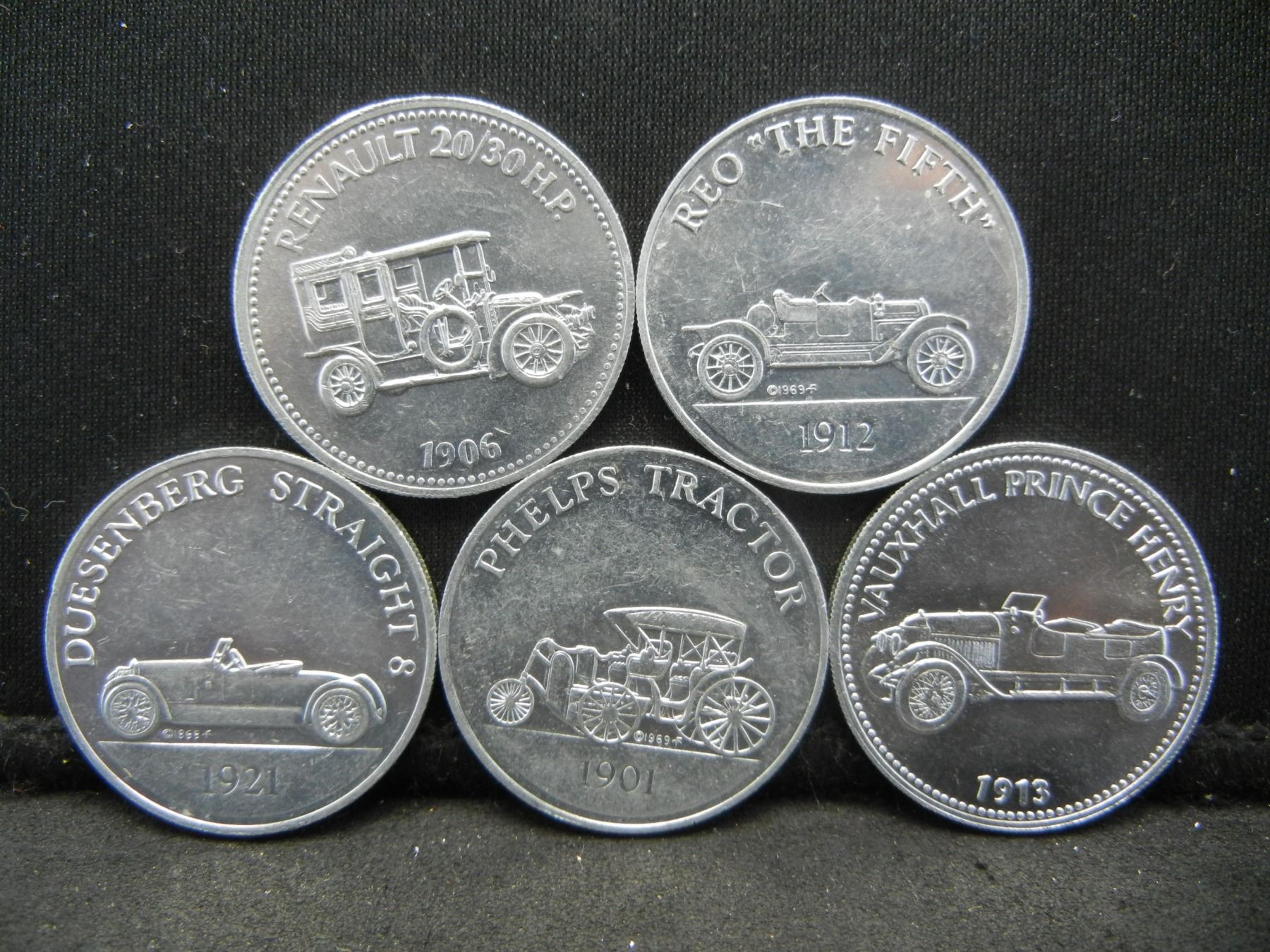 (5) Antique Car Tokens