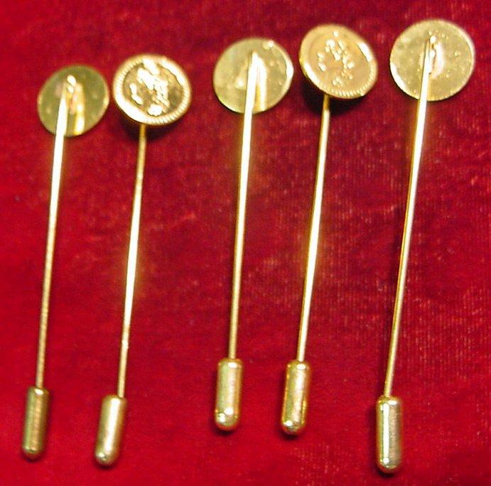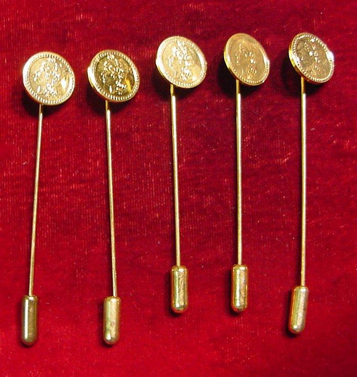 (5) Antique Pattern Gold Coin Stick Pin. Originally Sold by Art Kagin at Coin Shows for $20. Each.