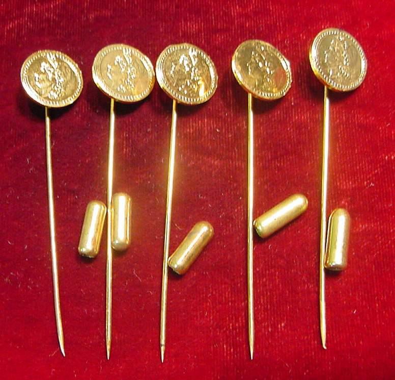 (5) Antique Pattern Gold Coin Stick Pin. Originally Sold by Art Kagin at Coin Shows for $20 Each.