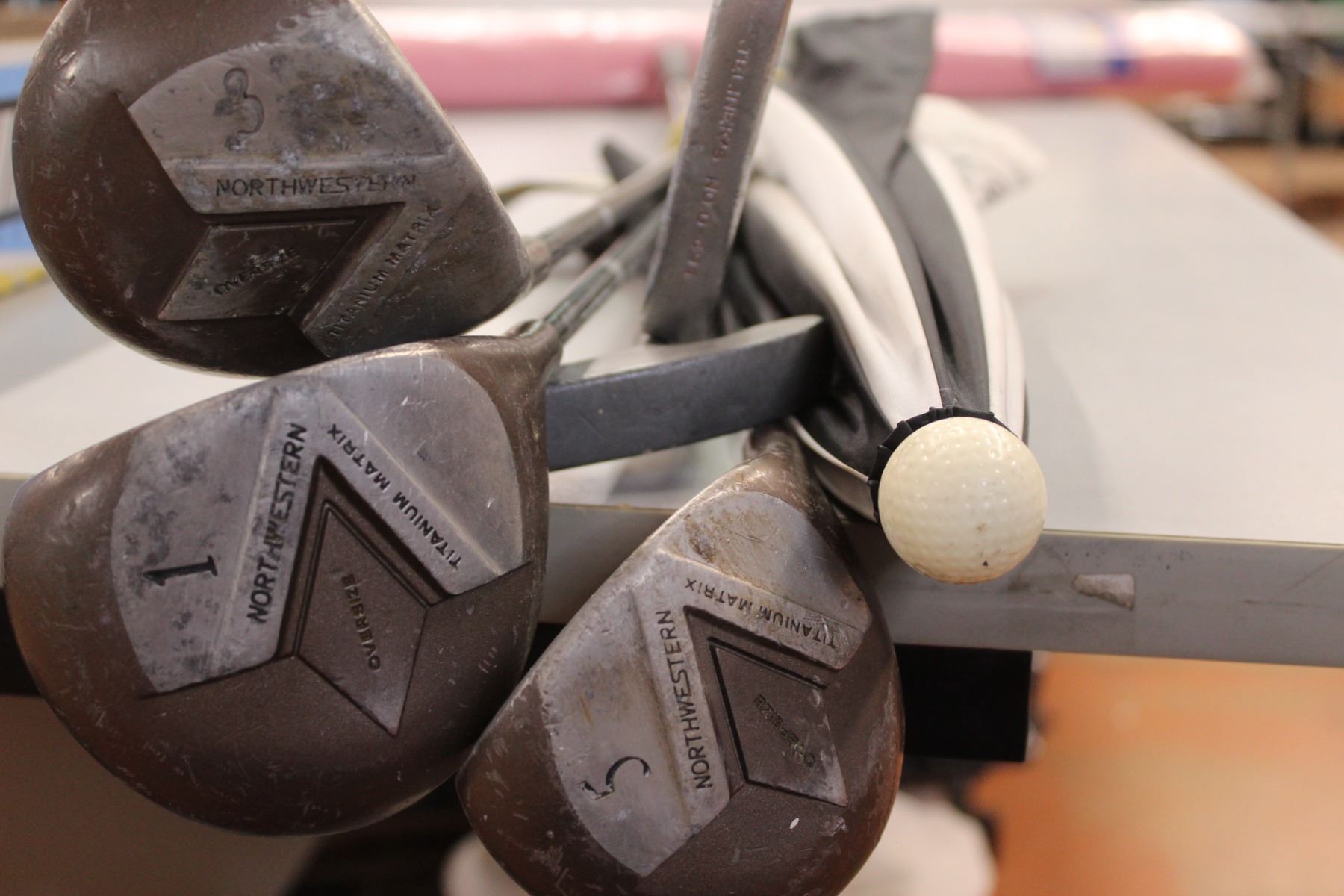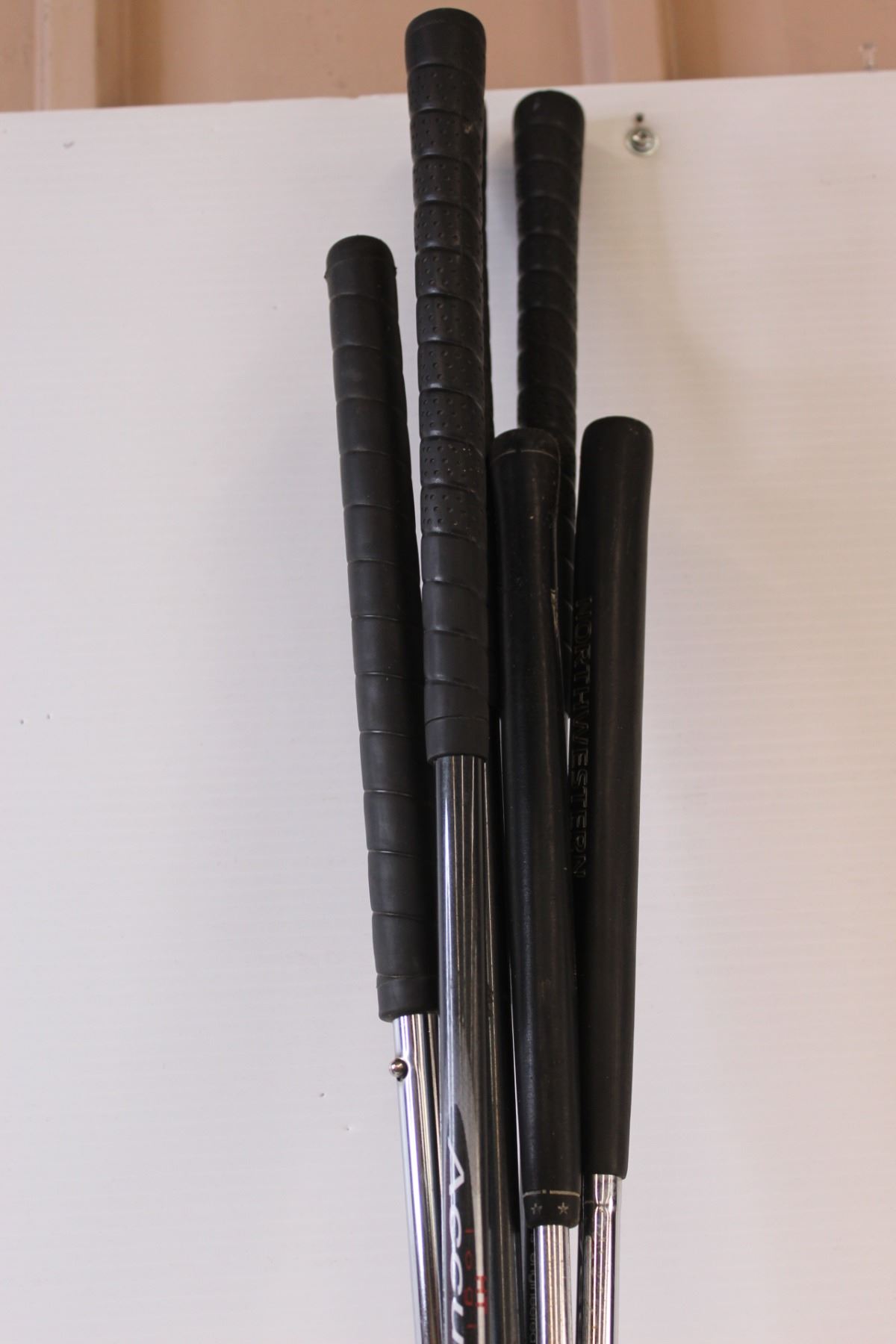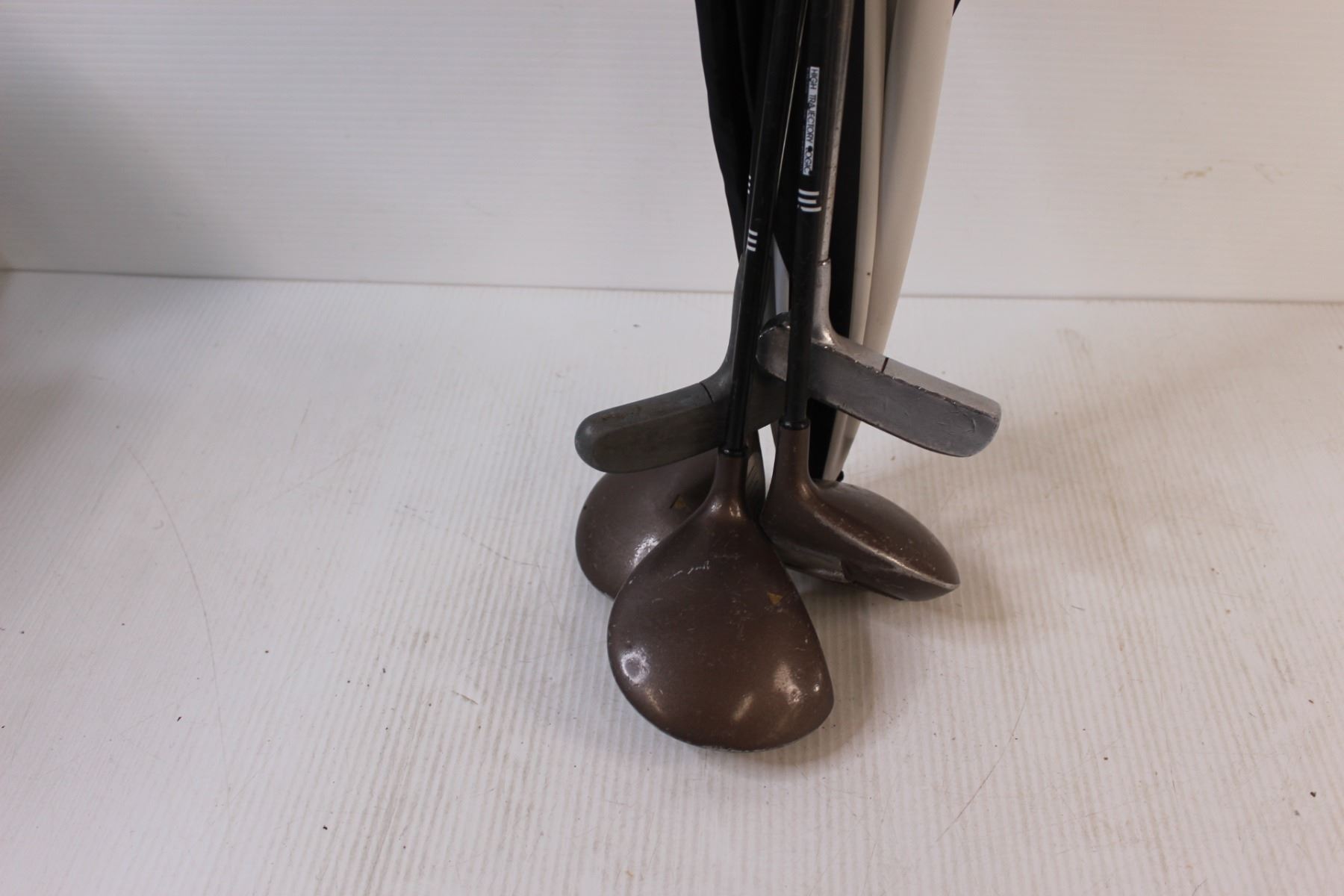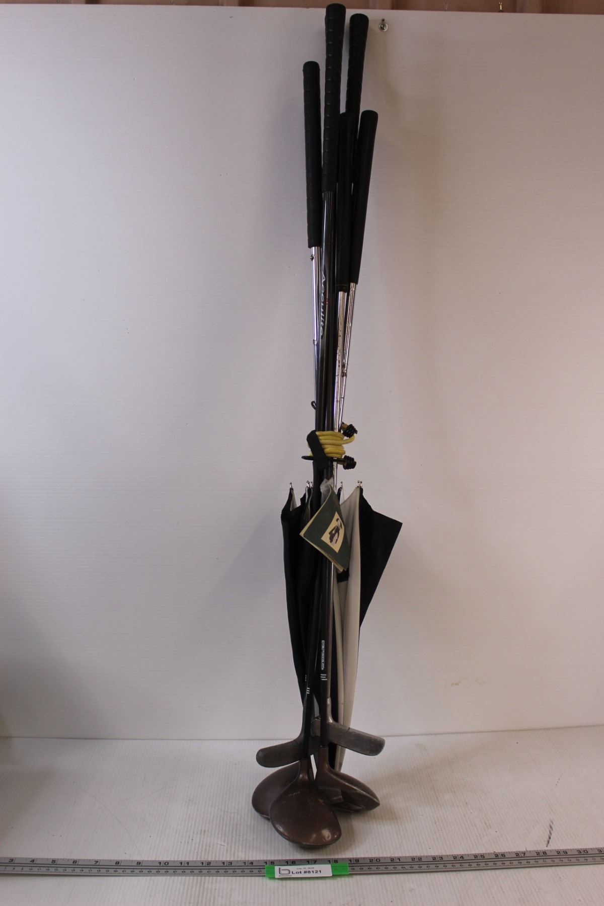 (5) Assorted Golf Clubs w/ Caddy Umbrella