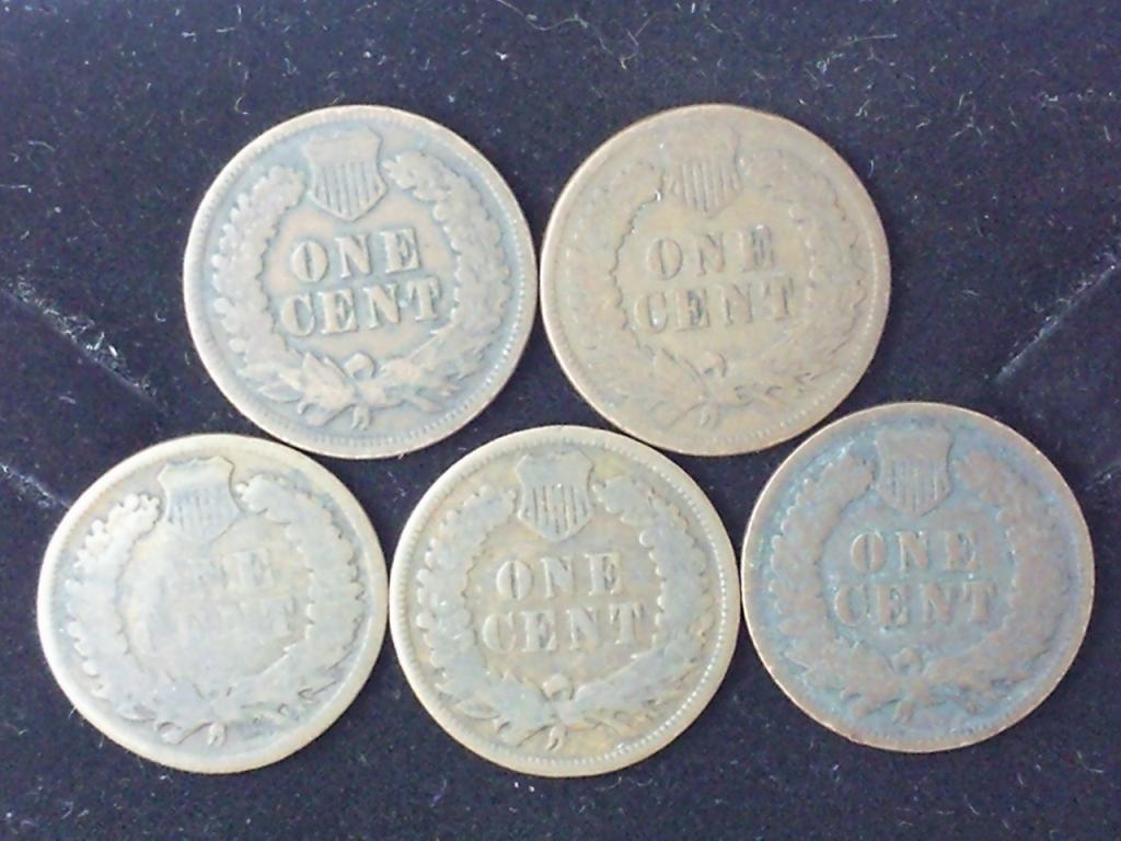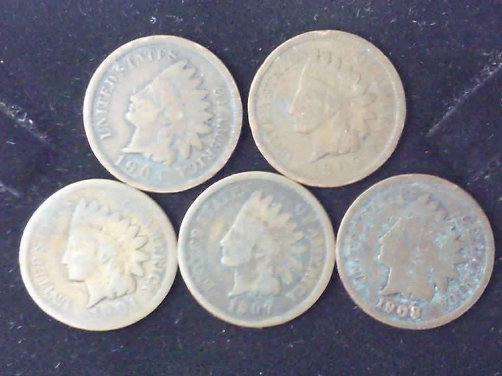 5 Assorted Indian Head Cents