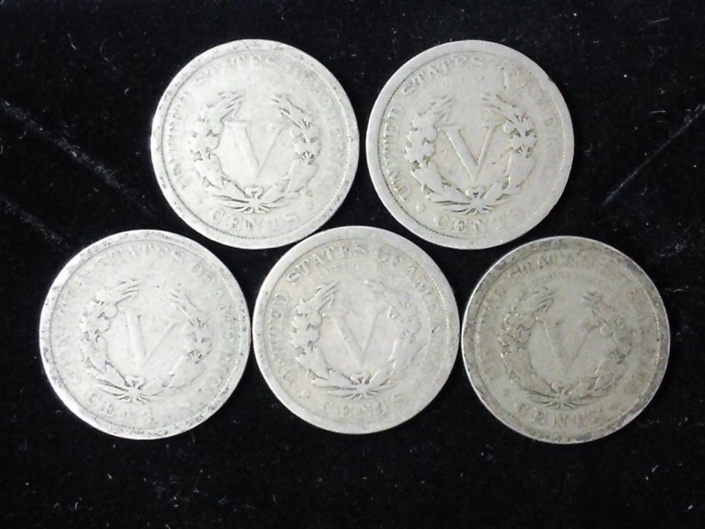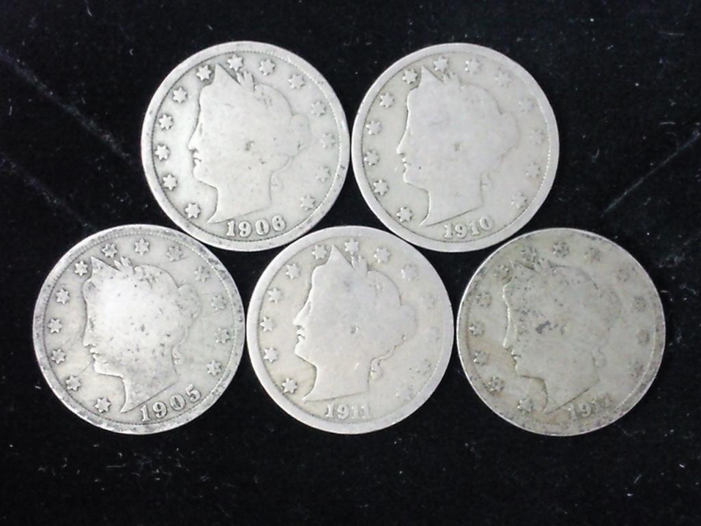 5 Assorted Liberty "V" Nickels