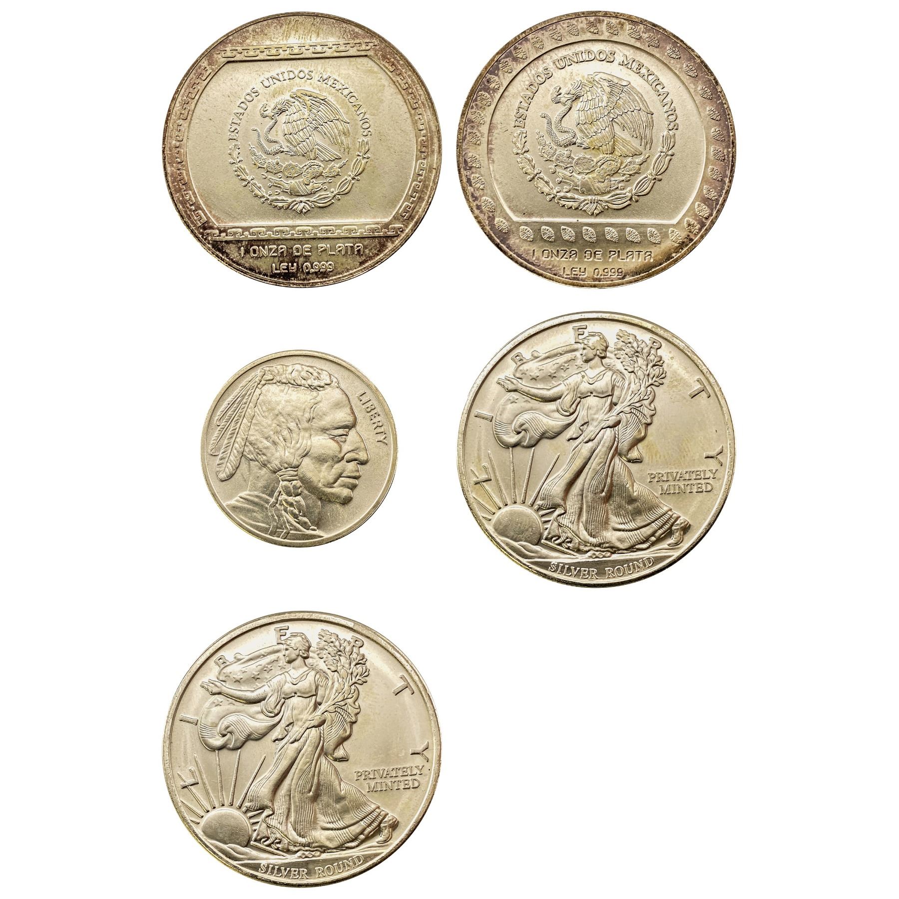 [5] Assorted U.S./Foreign 1oz Silver Rounds