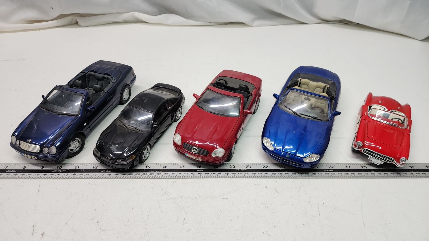 5 Assorted model cars - Mercedes Benz, Mustang, etc.