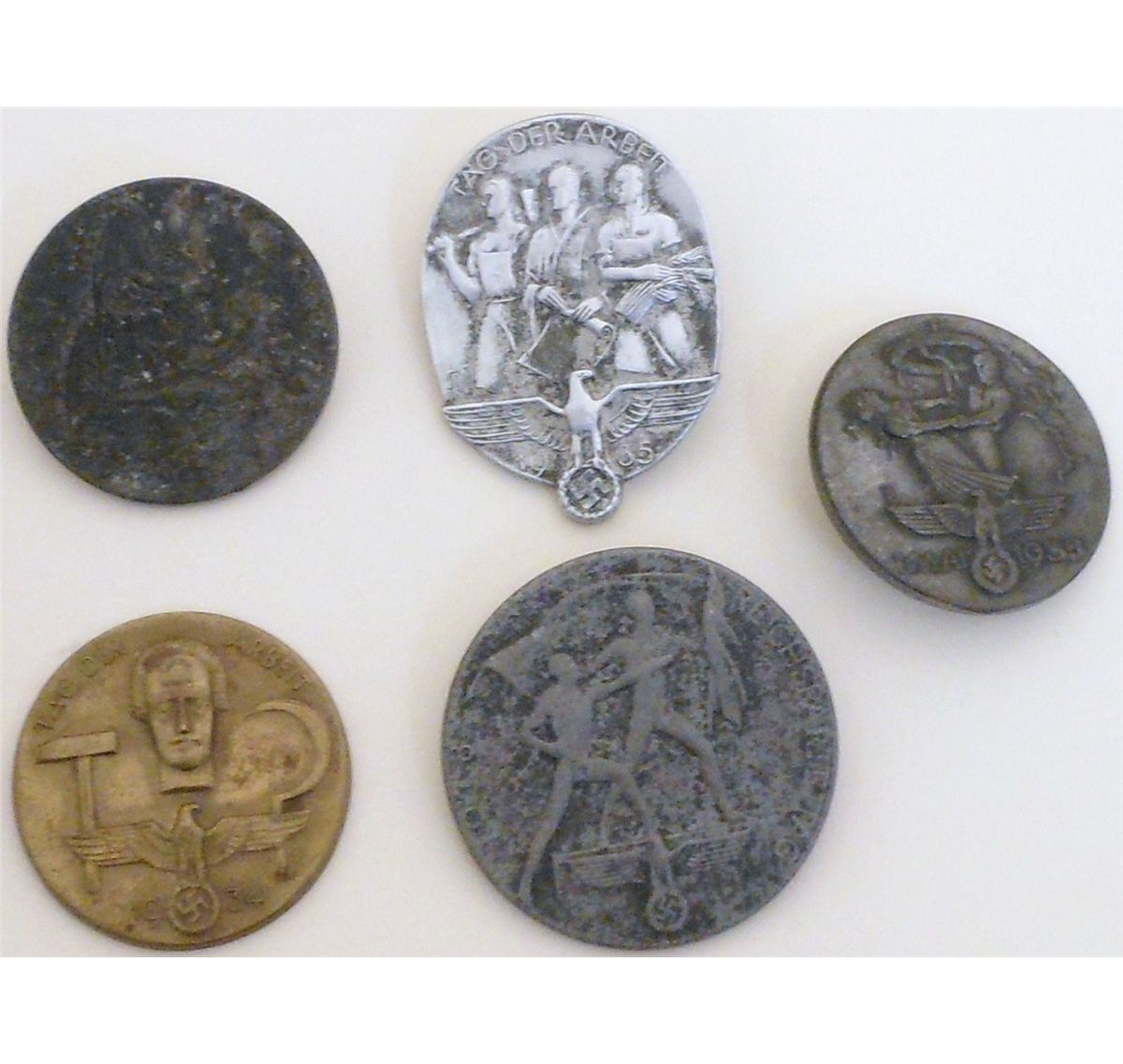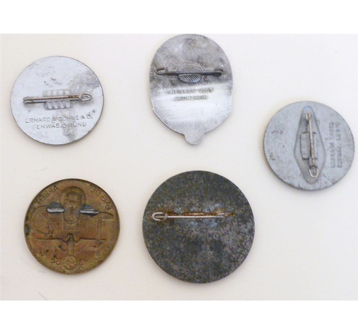 Lot of 5 Assorted German Nazi WWII Pins/Badges. All are in Good Condition with some wear. The Brass/Copper piece is missing the pin on the back. (See Pictures)