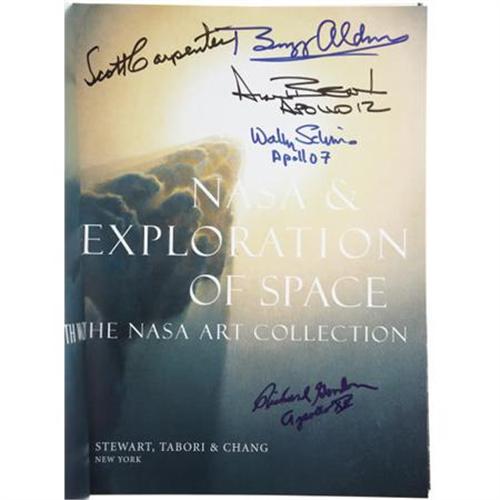 <B><B>Signed By Five Astronauts <I></B></I><B><I>NASA & The Exploration of Space with Works From The NASA Art Collection</B></I></B></I></B></I></B></I><B> </B></I> by<B> </B></I>Roger D. Launius, NASA Chief Historian and Bertram Ulrich, Curator, NASA Art Program, (New York: Stewart, Tabori & Chang, 1998), 224 pages, first edition, folio, hard cover, unclipped dust jacket. Signed directly on the title page by five (5) Astronauts: Buzz Aldrin (Apollo 11); Scott Carpenter (Mercury Atlas 7); Alan Bean (Apollo 12); Wally Schirra (Gemini 6) and Richard Gordon. Aldrin and Bean were among the elite group of only twelve who walked on the moon. Forward by John Glenn. Near mint.<BR><BR><BR><b>Shipping:</b> Books & Catalogs (<a target="_blank" href="http://www.heritageauctions.com/common/shipping.php">view shipping information</a>)
