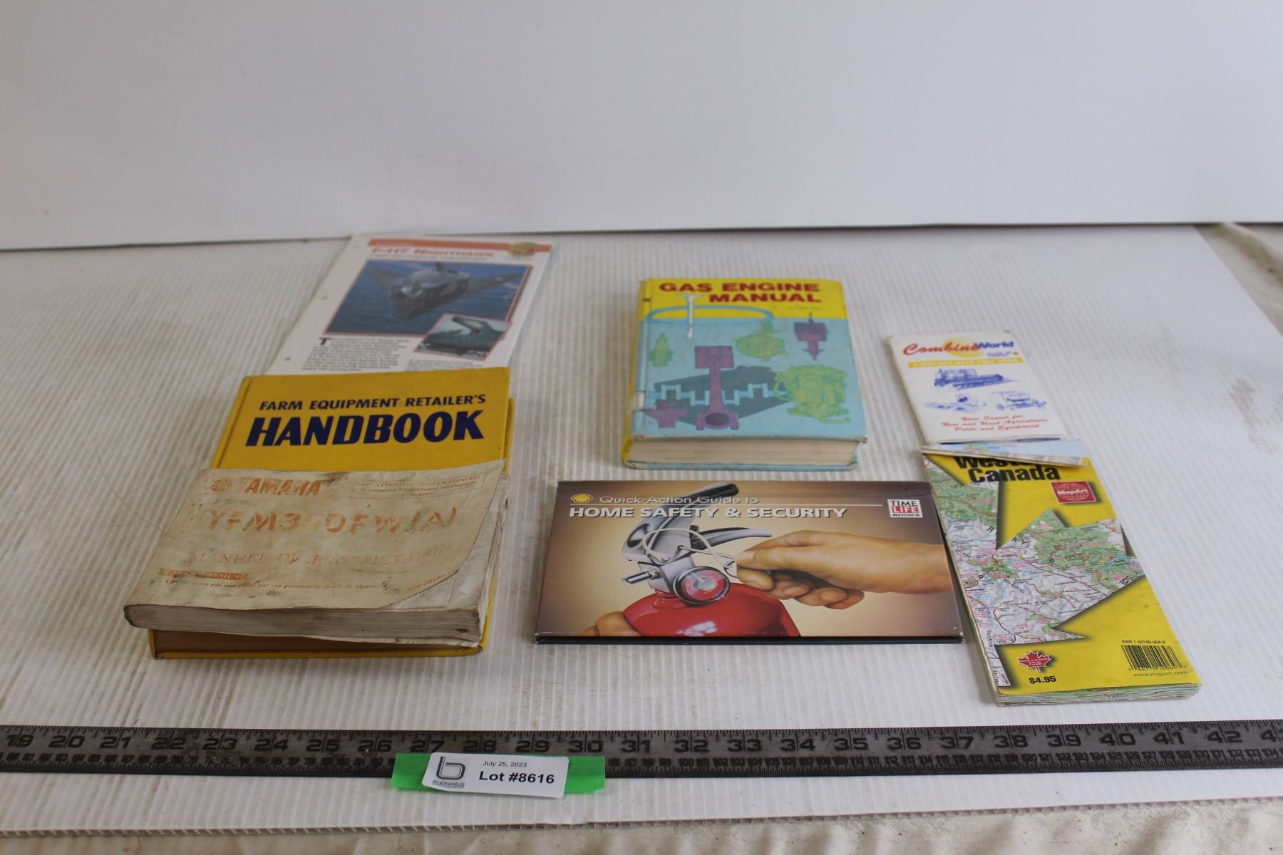 (5)Automotive Books (Gas Engine Manual, Farm Equipment Retailer's Handbook), ATV Manual and Map
