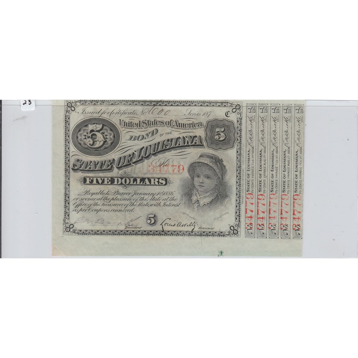 $5 BABY BOND UNC LOUISIANA WITH COUPONS ATTACHED