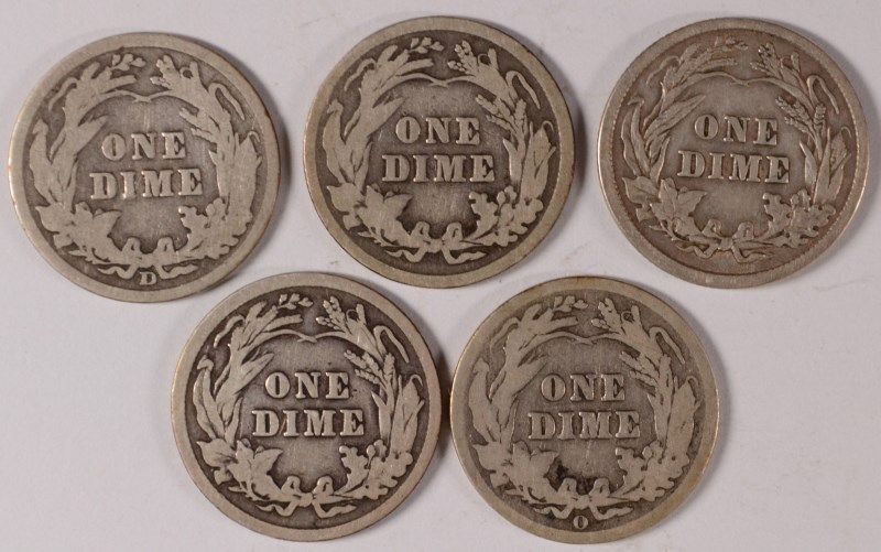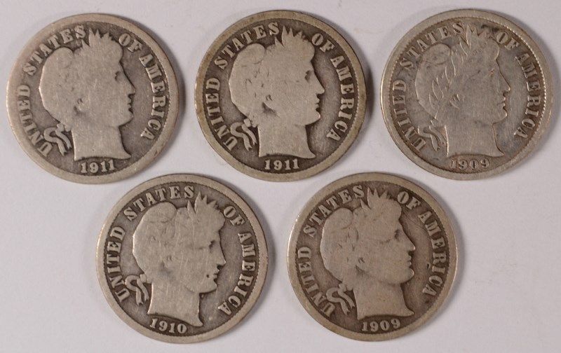 (5) BARBER DIMES (09, 09-O, 10, 11, 11-D)
