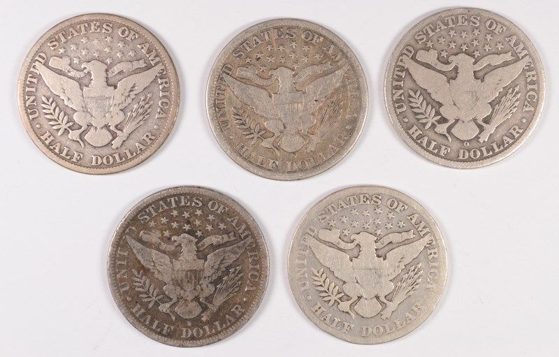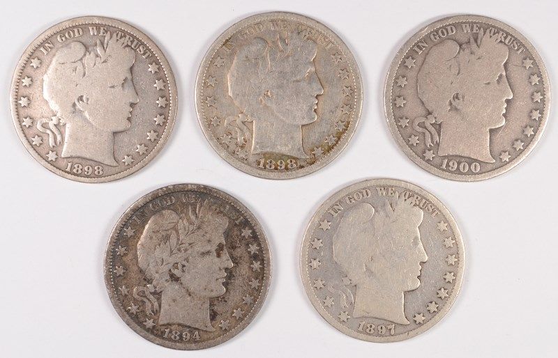 (5) BARBER HALF DOLLARS (94-S, 97, 98, 98-S, 00-0)