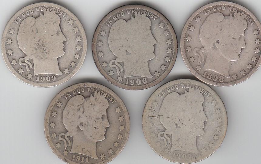 5 BARBER QUARTERS SILVER