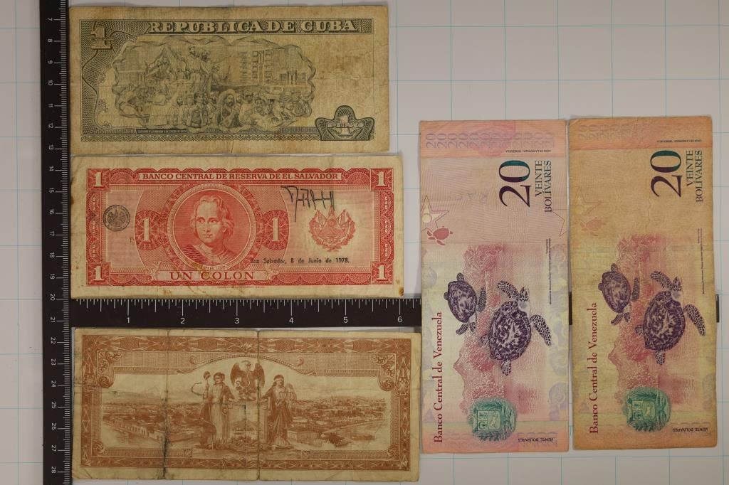 MEXICO SINALOA. 2-VENEZUELA 20 BOLIVARES, EL SALVADOR 1 COLON, SINALOA 1 PESO AND CUBA 1 PESO. THE SINALOA BILL IS A LITTLE BETTER DATE, LOOK THIS ONE UP.