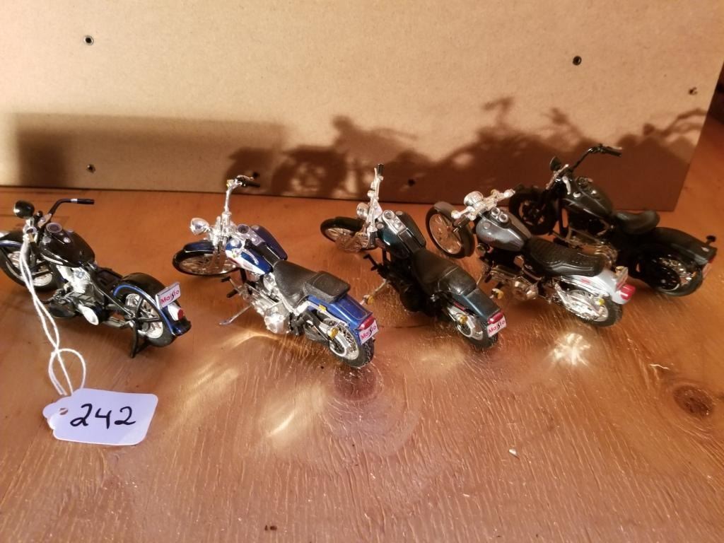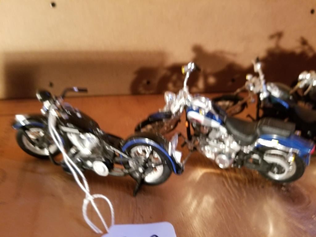 5 BLACK SCALE MODEL MOTORCYCLES - MOSTLY HARLEY, - 5"