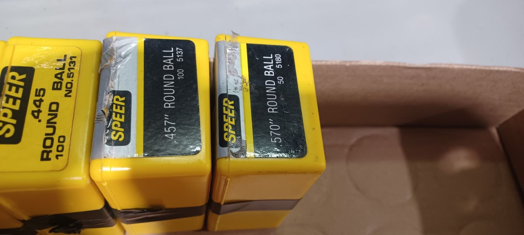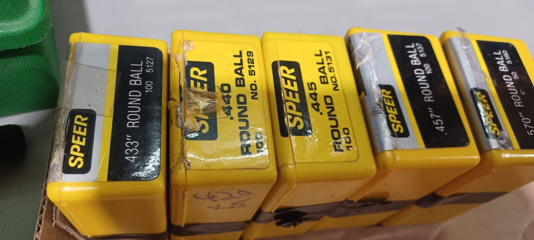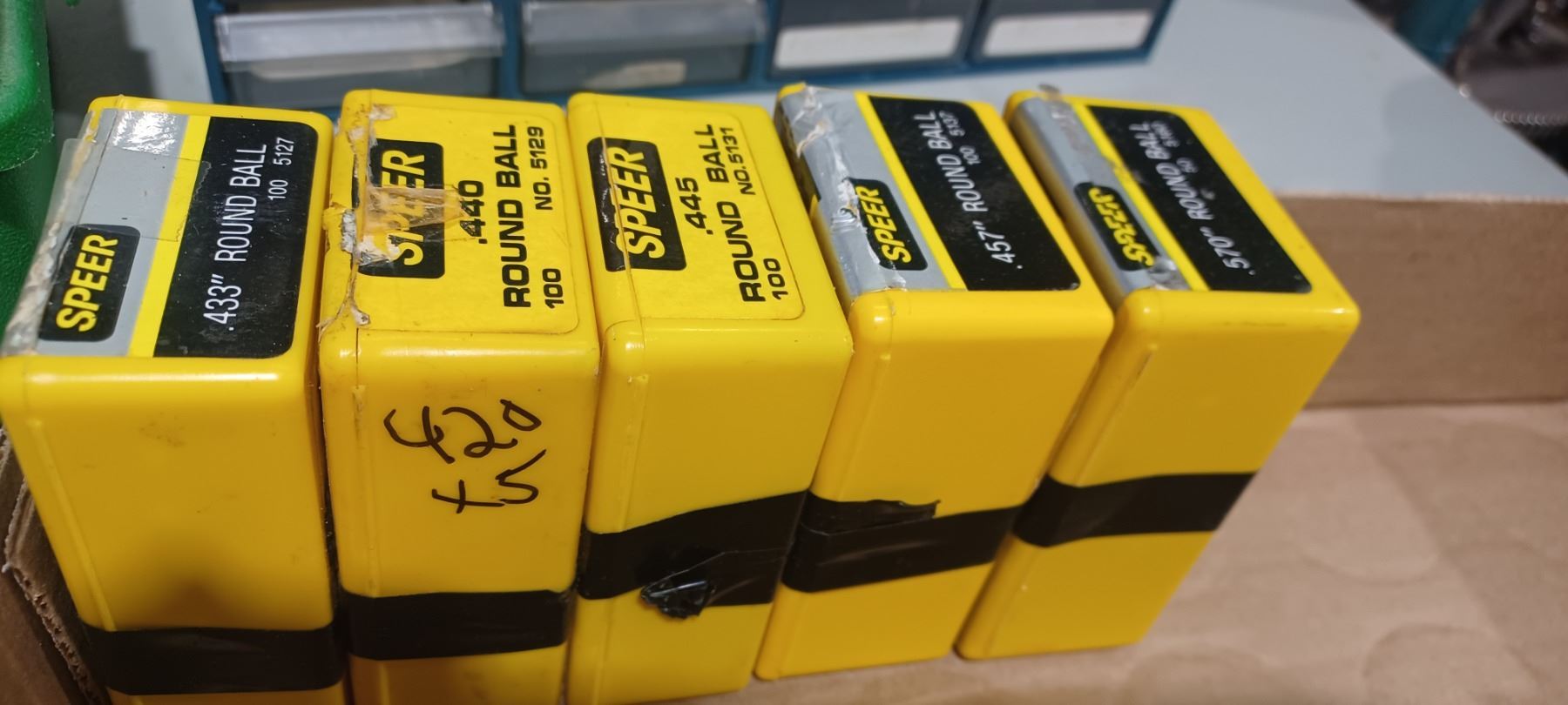5 BOXES OF .433 TO .570 ROUND BALLS - 4 FULL 1 PARTIAL