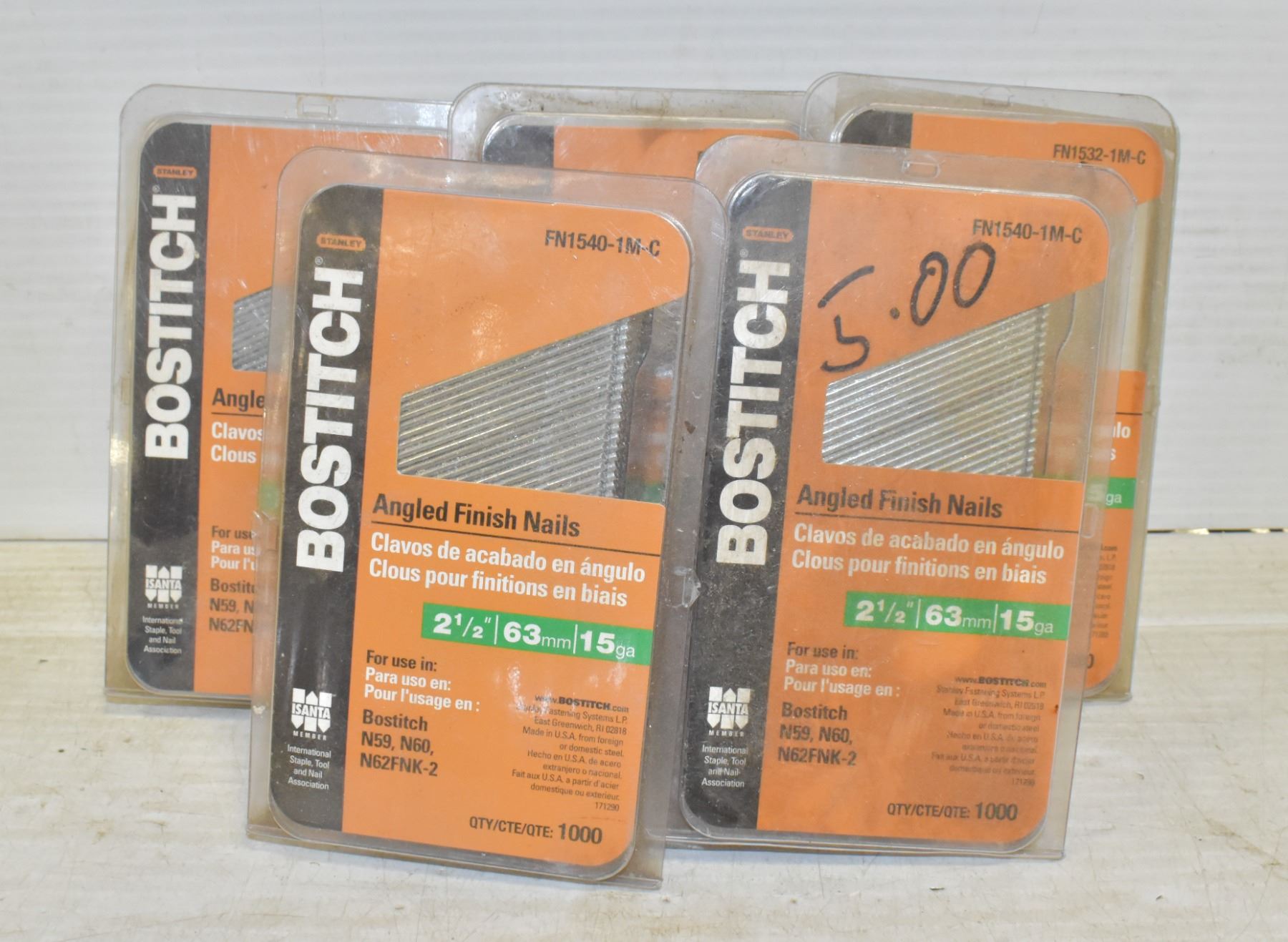 5 BOXES OF ANGLED FINISHING NAILS ,1000 PER BOX